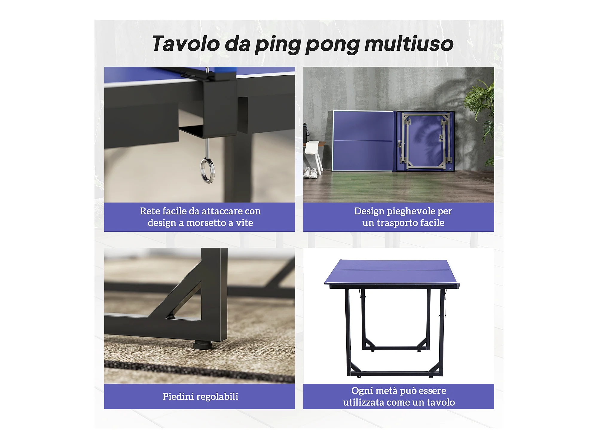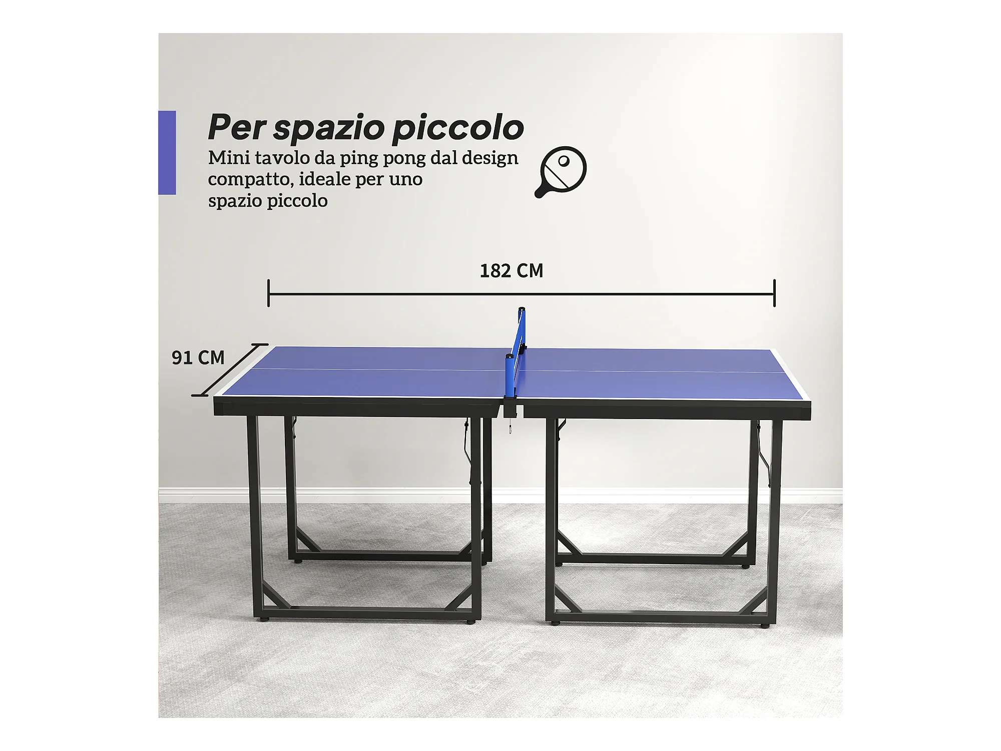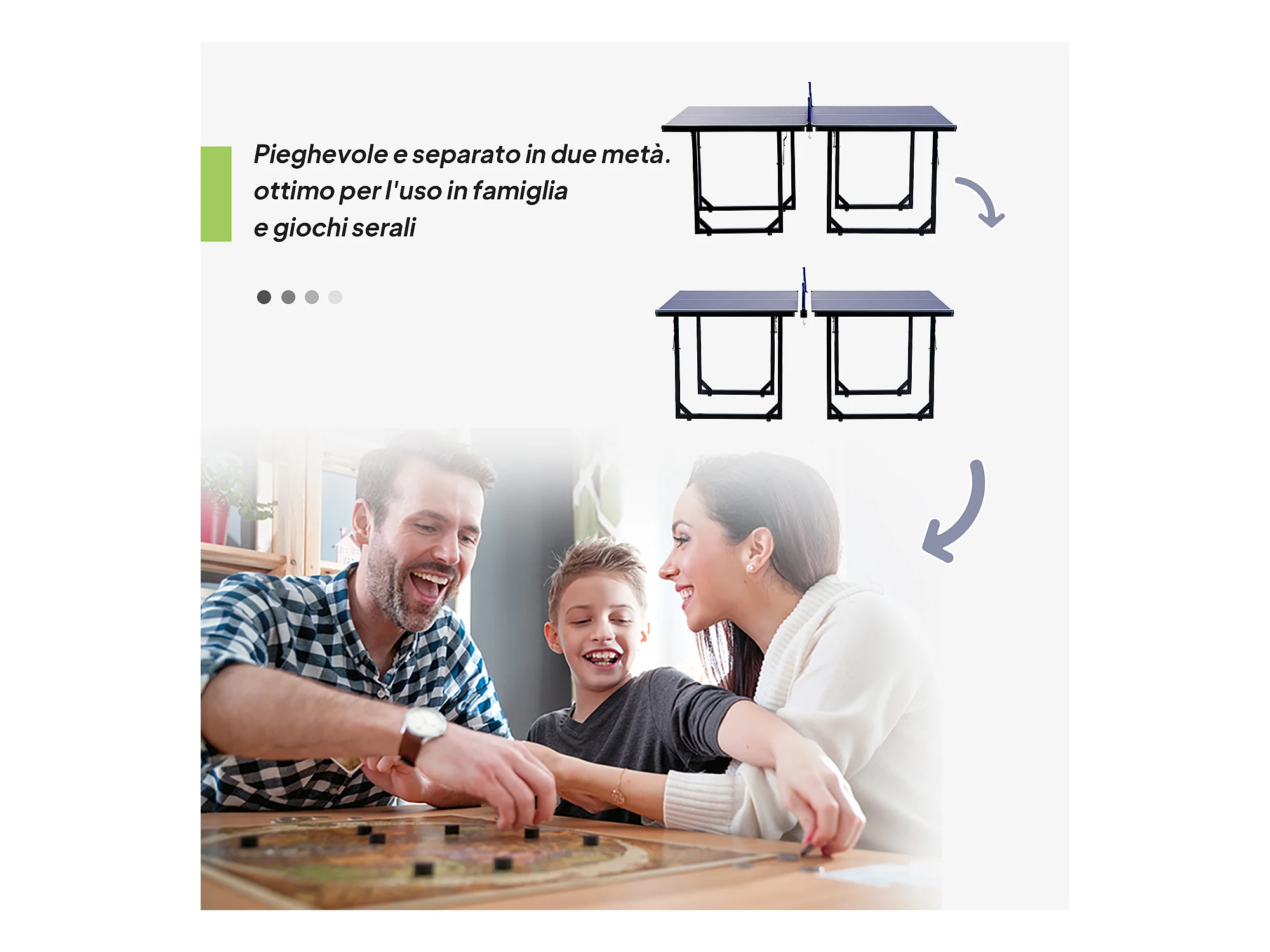 Tavolo ping pong pieghevole con rete da gioco 182x91x76cm blu