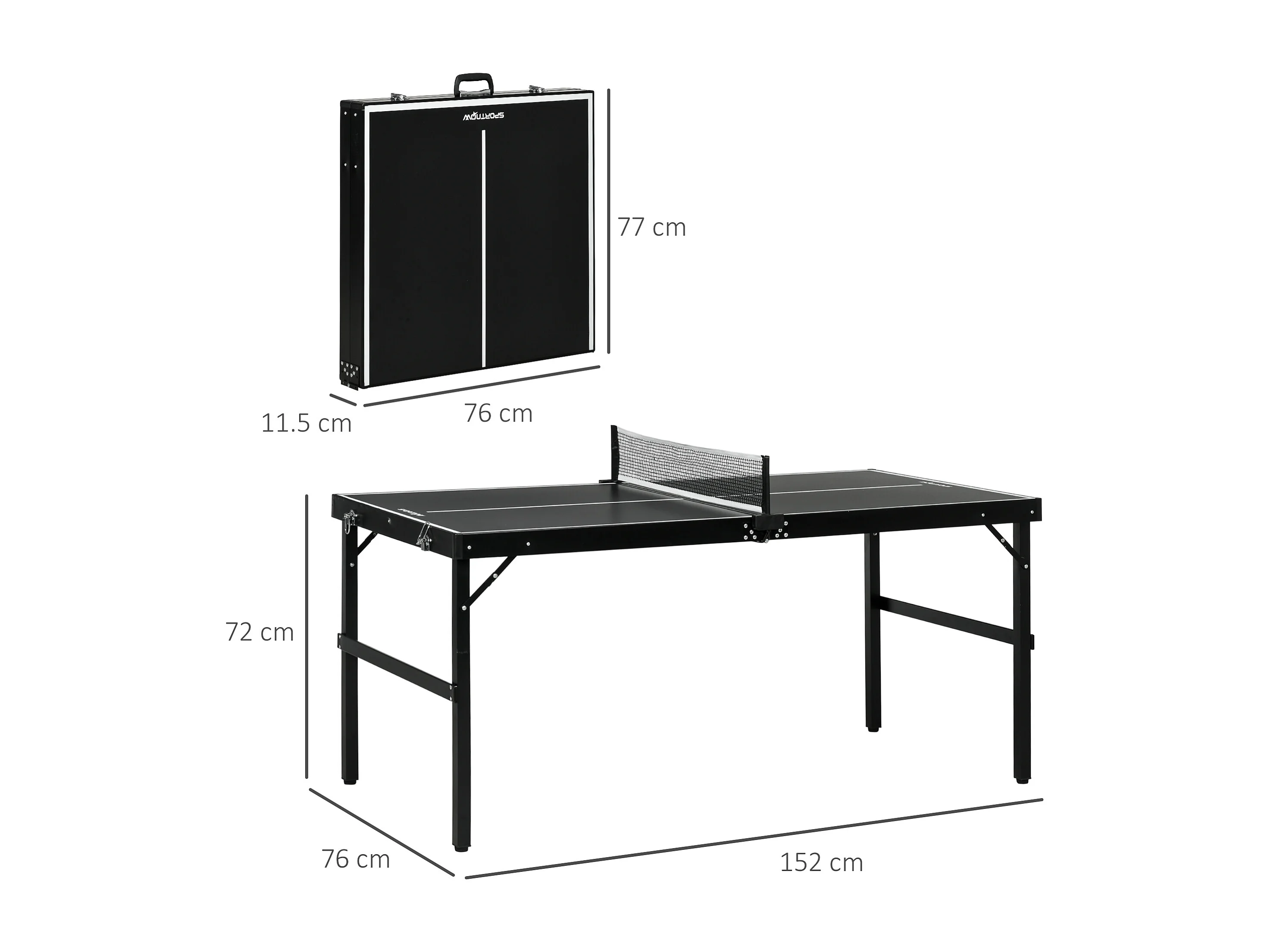 Tavolo ping pong pieghevole in alluminio e mdf 152x76x72 cm nero