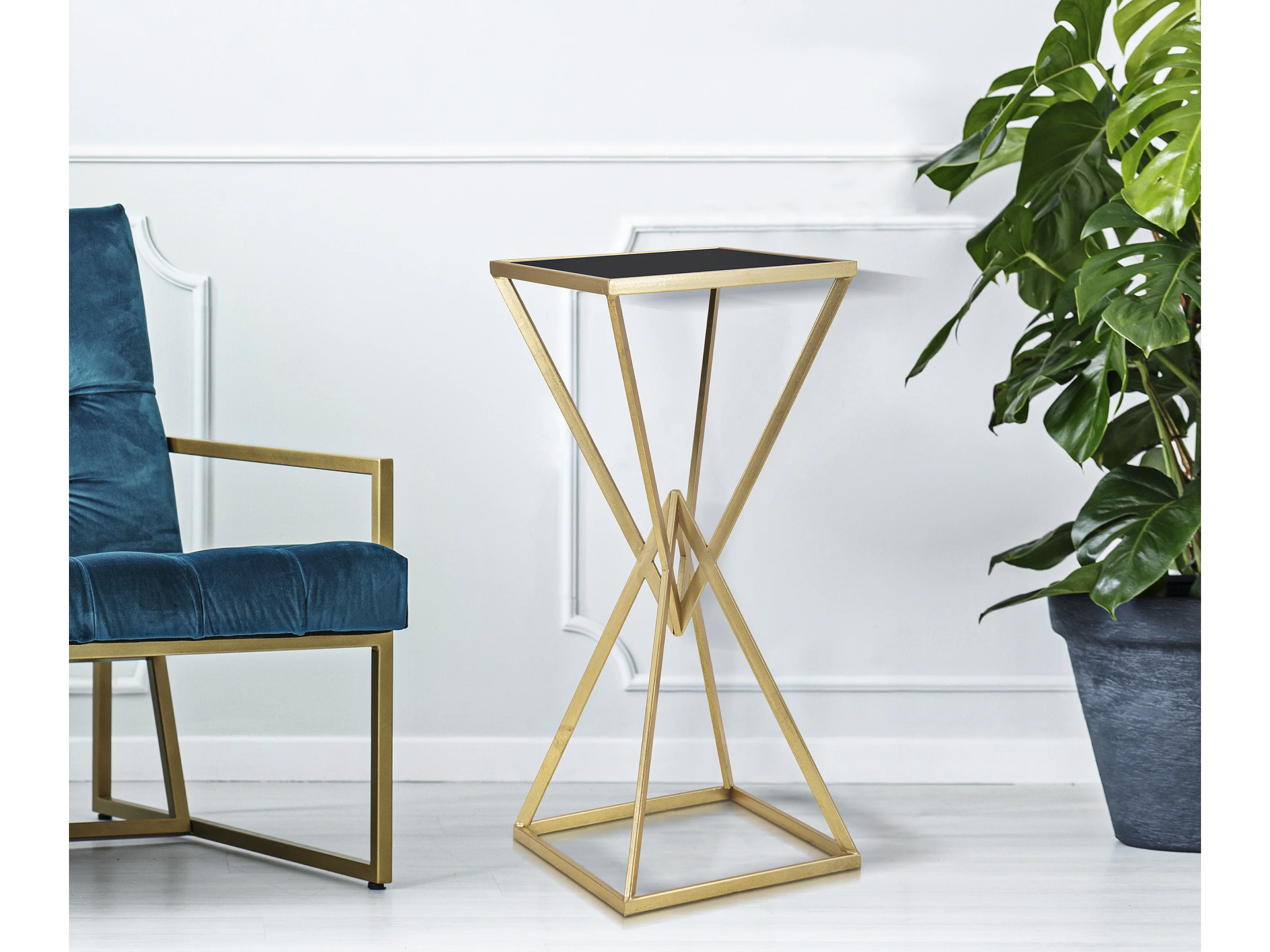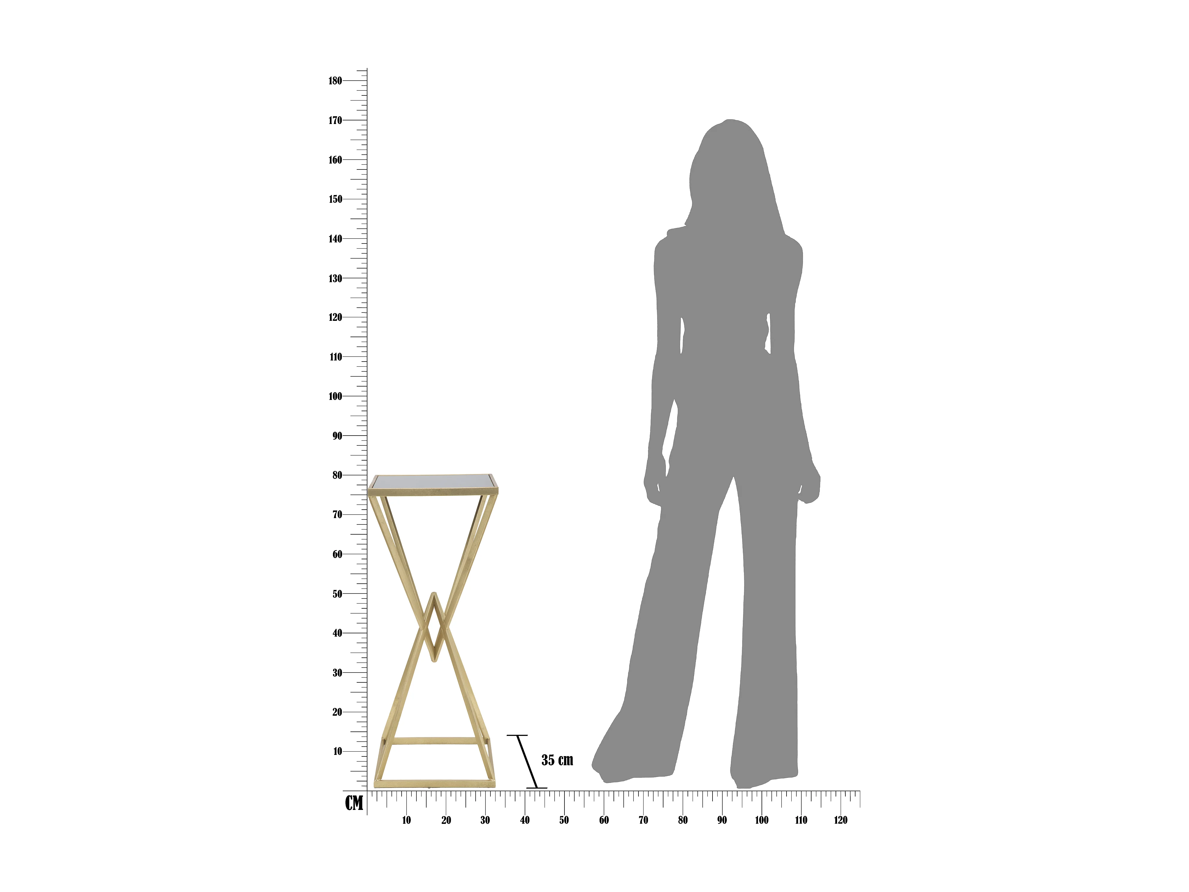 Tavolo porta telefono piramidi in metallo dorato cm 35x35x80
