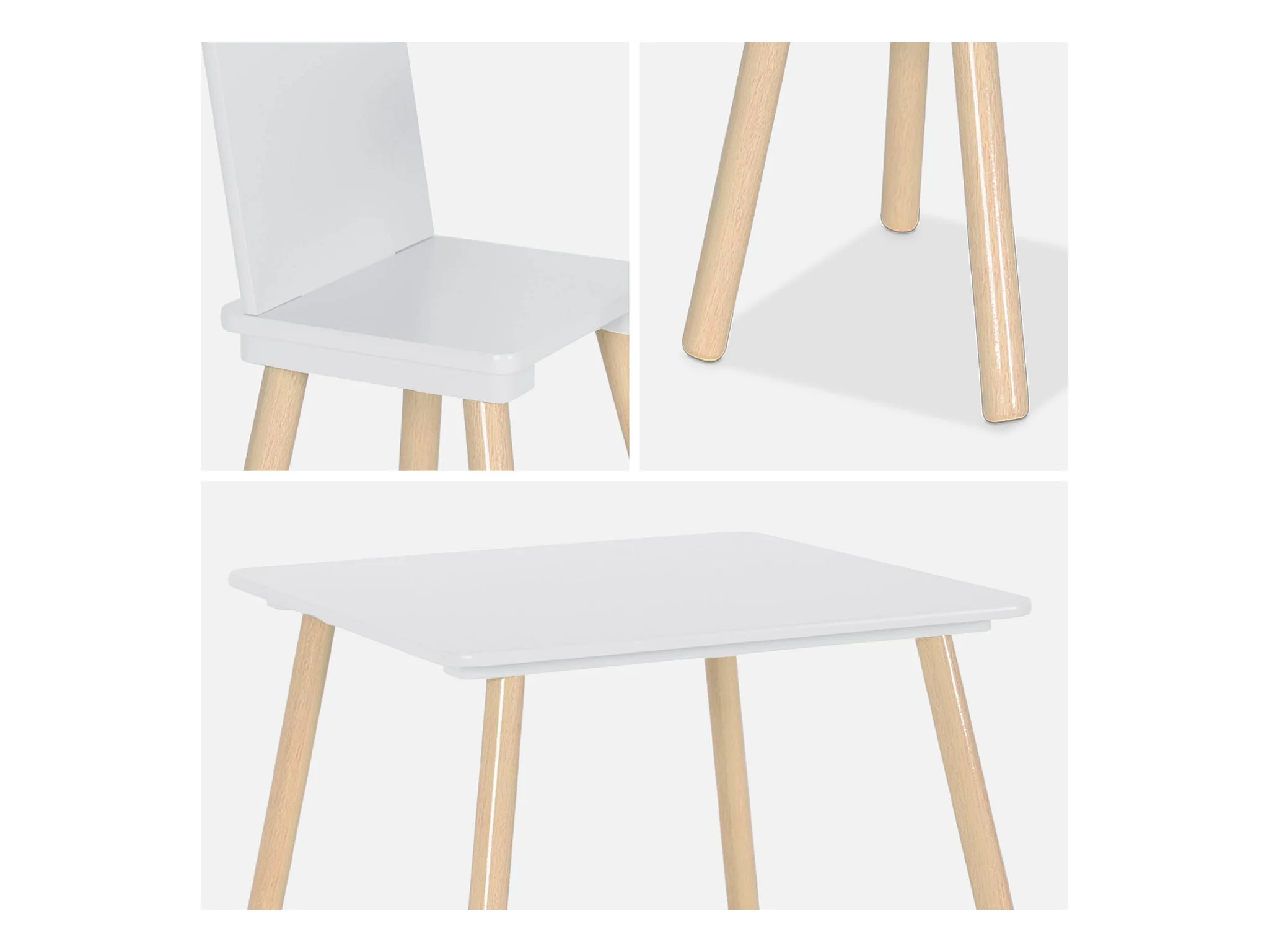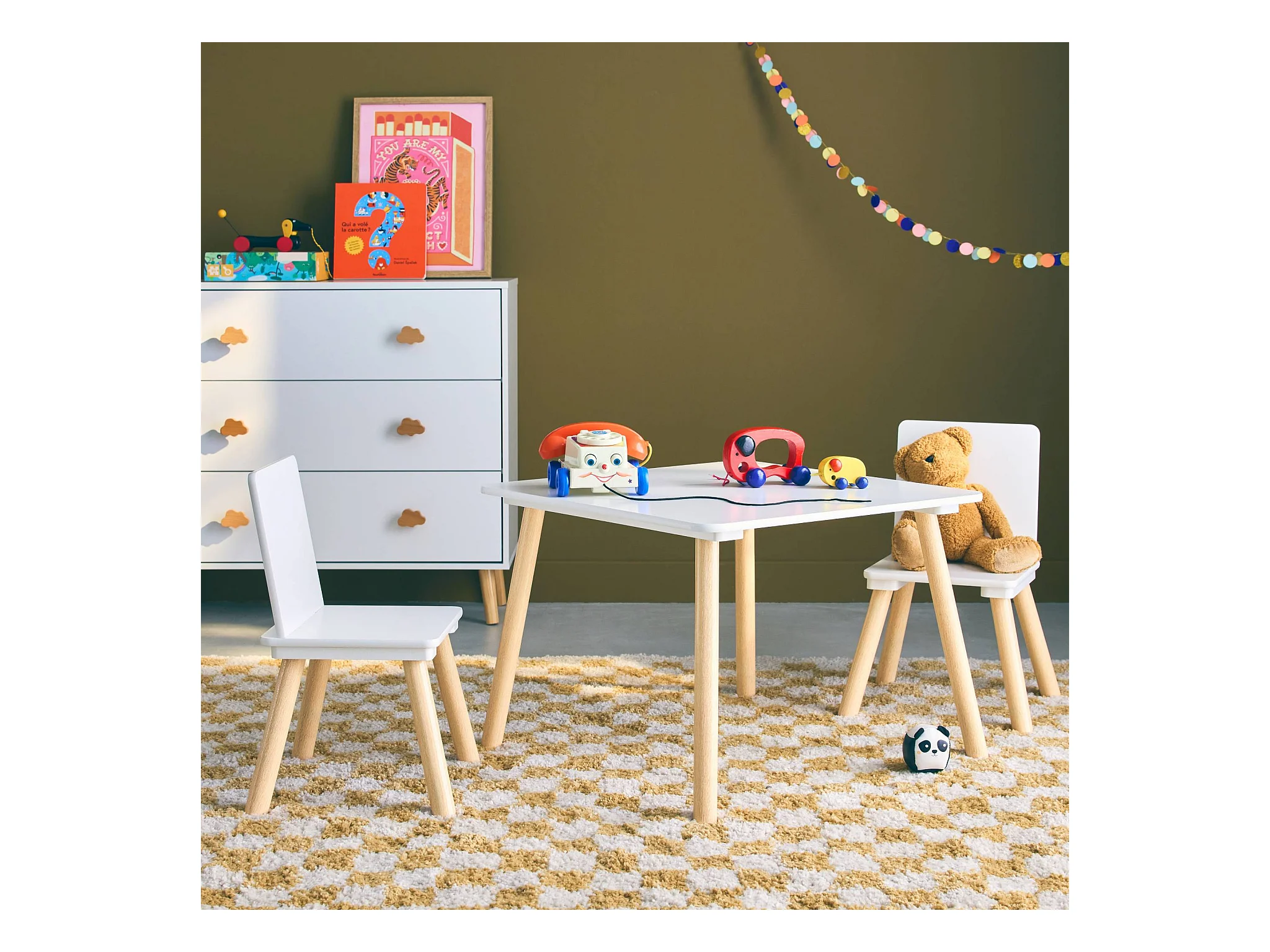 Tavolo, sedie e contenitore in legno per bambini Coeur