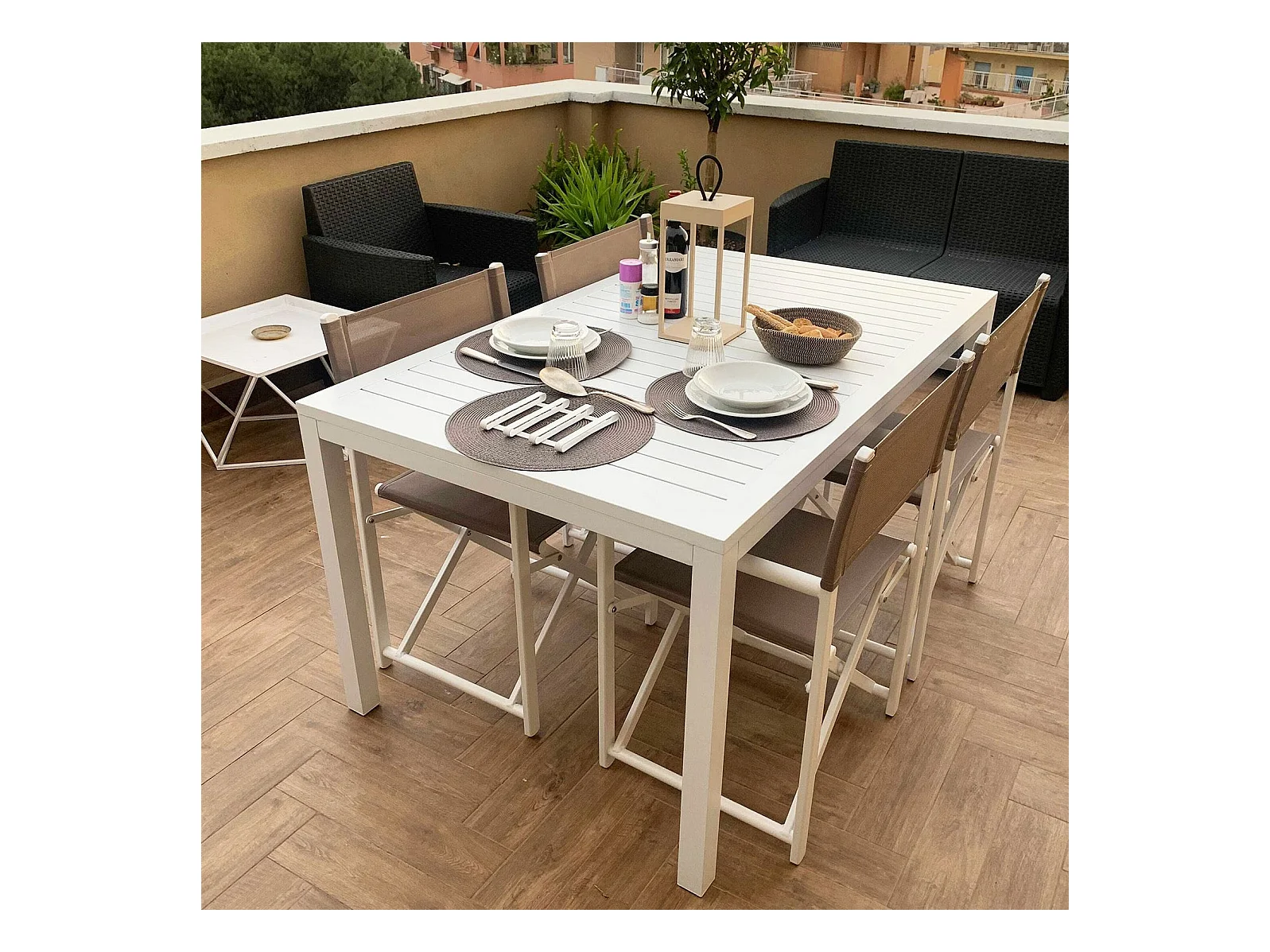 MilaniHome.it - Tavolo da giardino in alluminio con piano in ceramica effetto legno di design.di coloreBianco