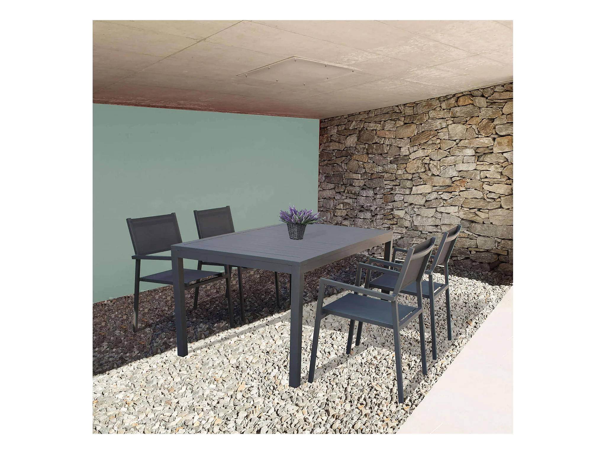 MilaniHome.it - Tavolo da giardino in alluminio con piano in ceramica effetto legno di design.di coloreAntracite