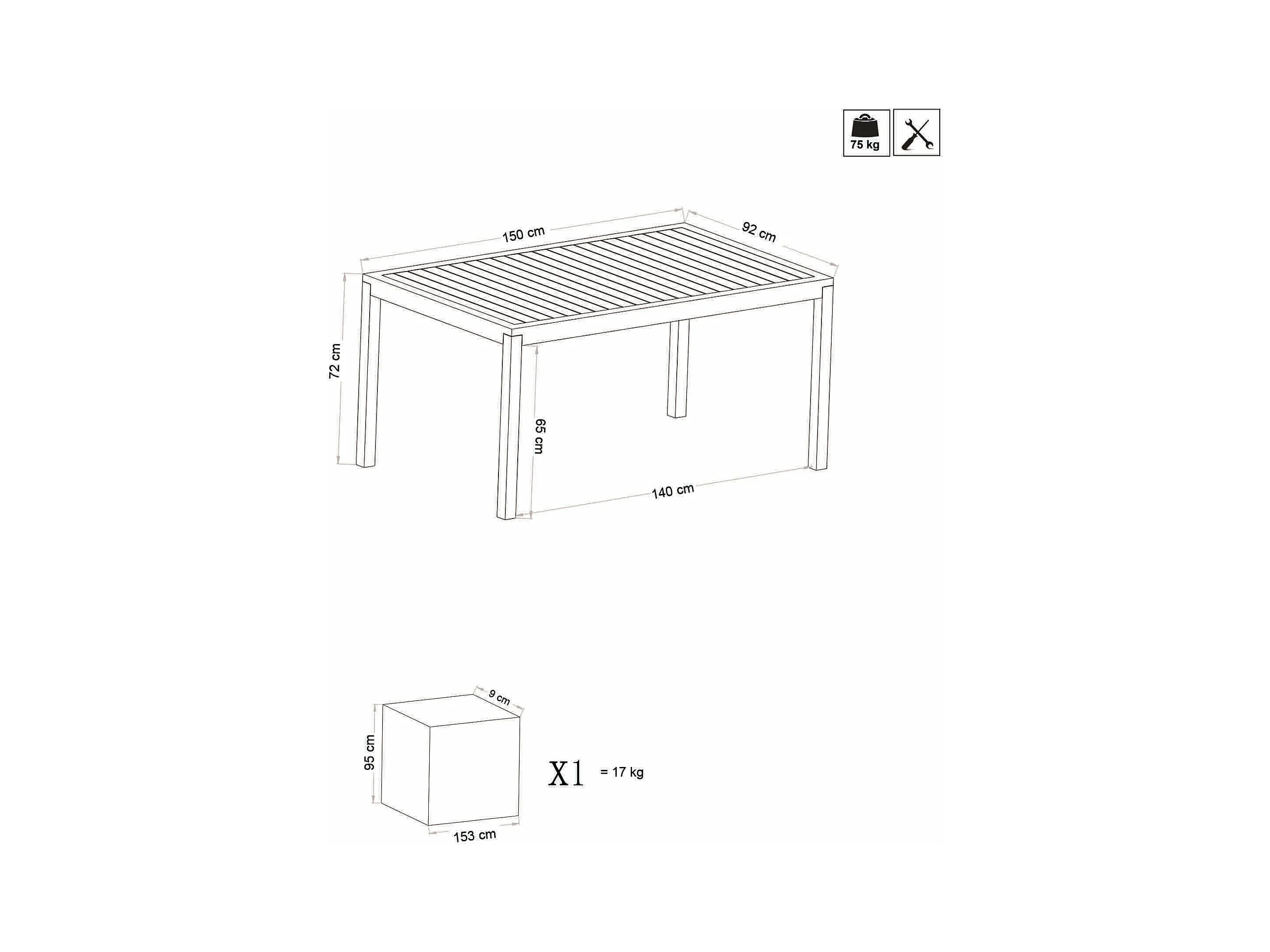 MilaniHome.it - Tavolo Rettangolare Fisso In Alluminio Bianco 150x90 Da Esterno Giardino, Per Ristorante Agriturismo Albergo Hoteldi coloreAntracite