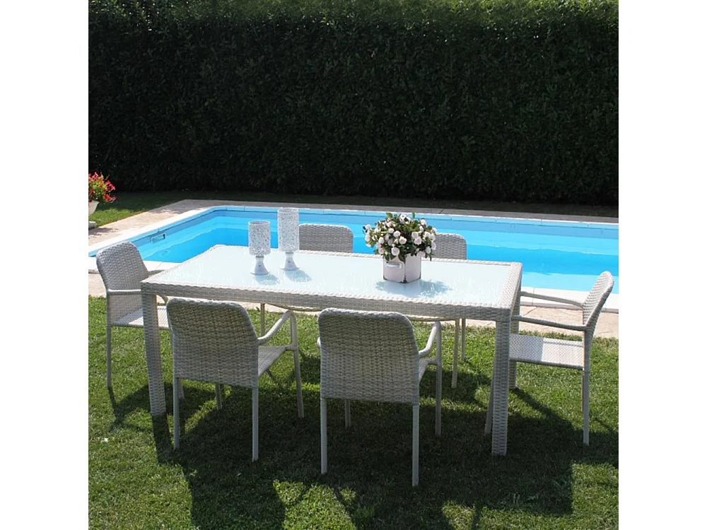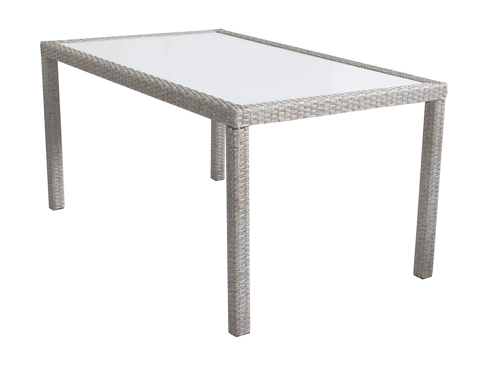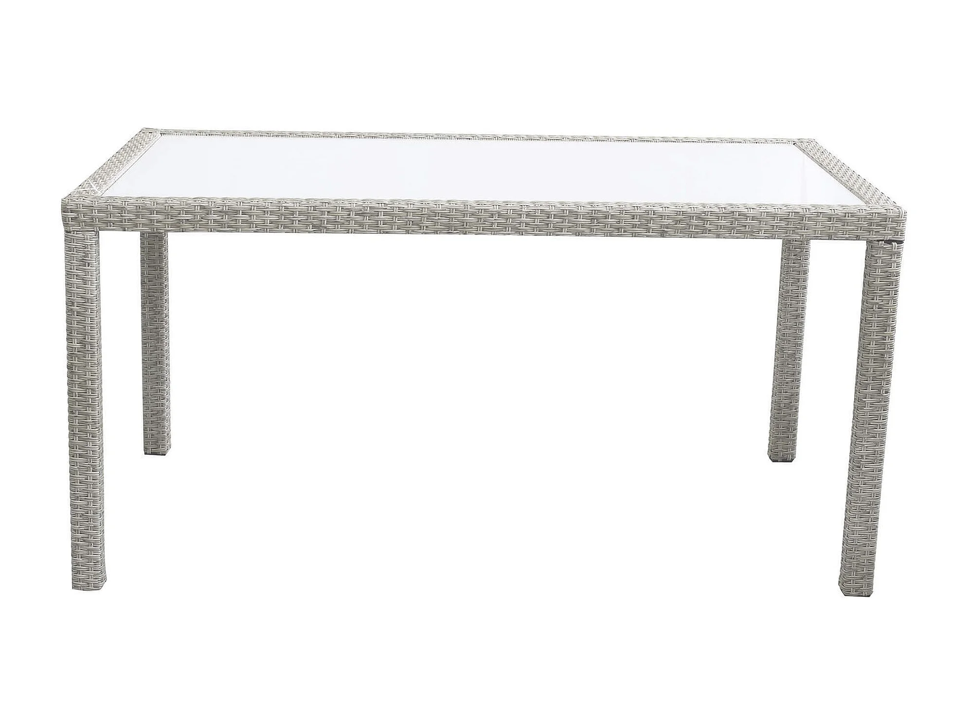 MilaniHome.it - Tavolo Rettangolare Fisso In Wicker Grigio 150x90 Piano In Vetro Intreccio In Rattan Sintetico Da Esterno Giardinodi coloreGrigio