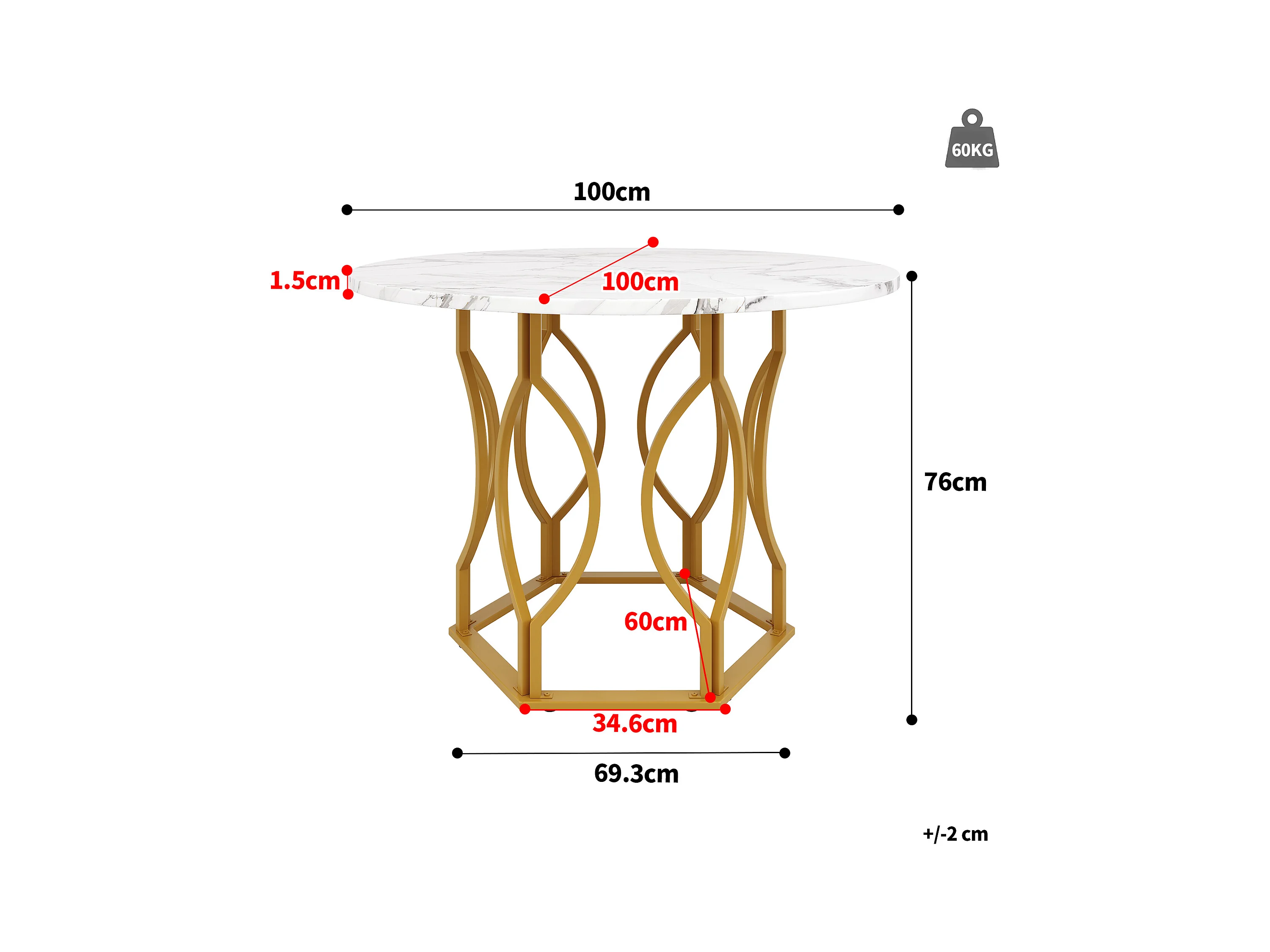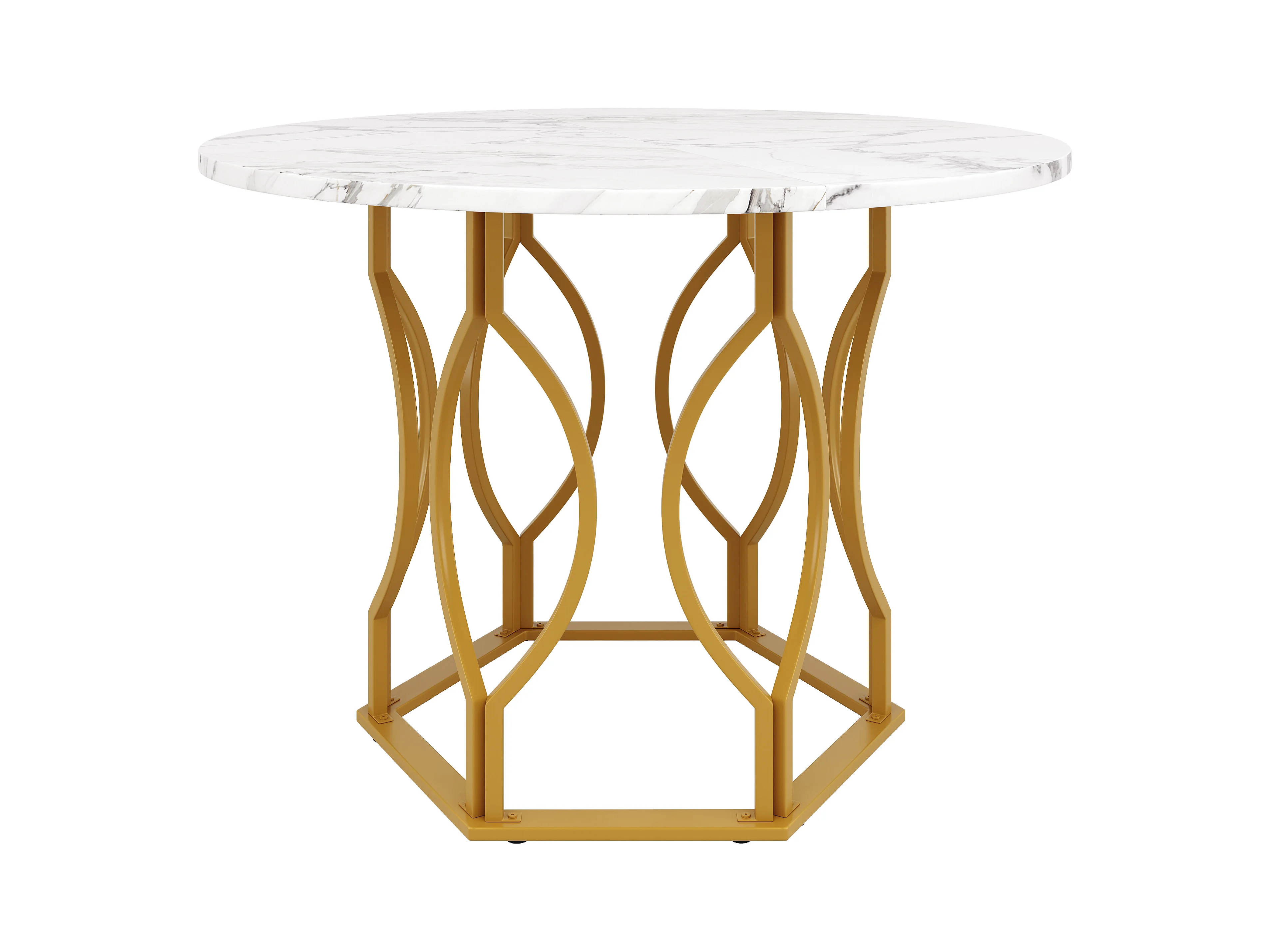 Tavolo rotondo 100×100×76 cm MDF marmo metallo cucina salon doré