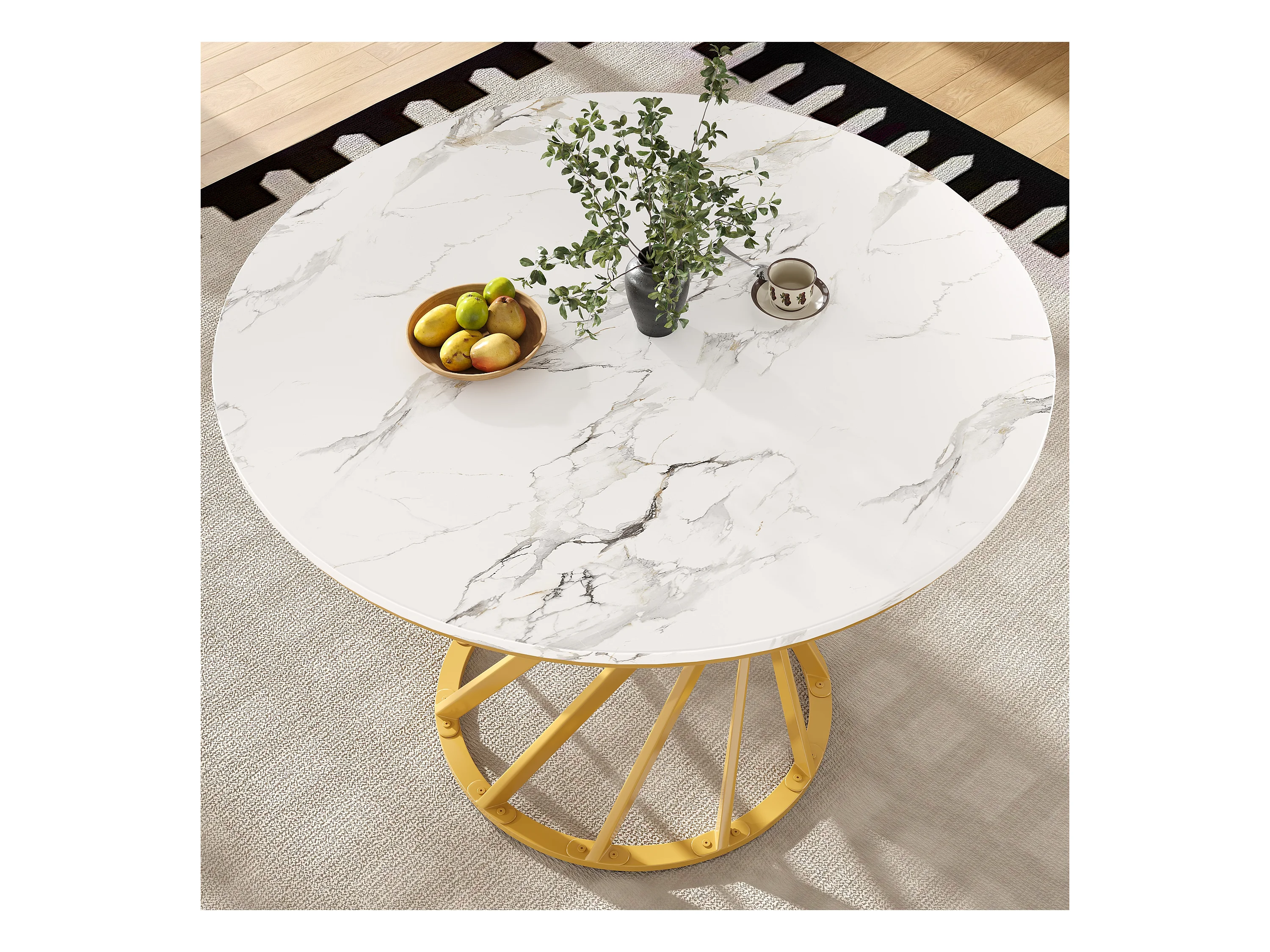 Tavolo ronde 80×80×76cm MDF marbré pied métal doré salone cucina