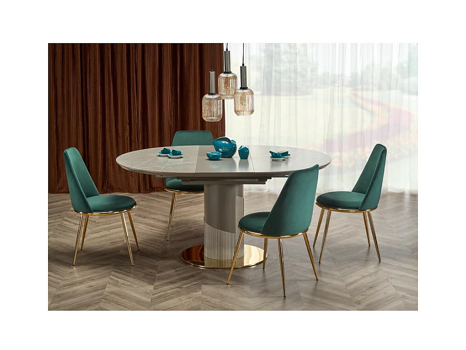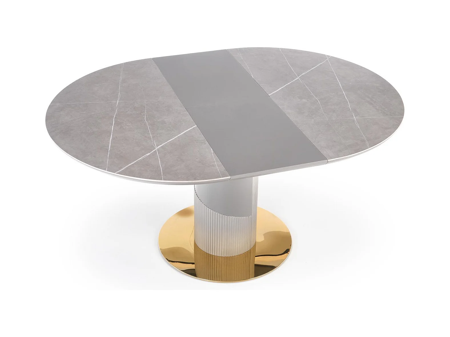 Tavolo rotondo allungabile con piano in simil marmo e gamba centrale RAM