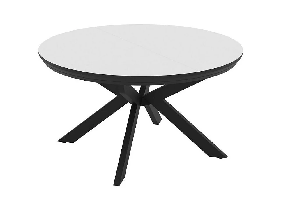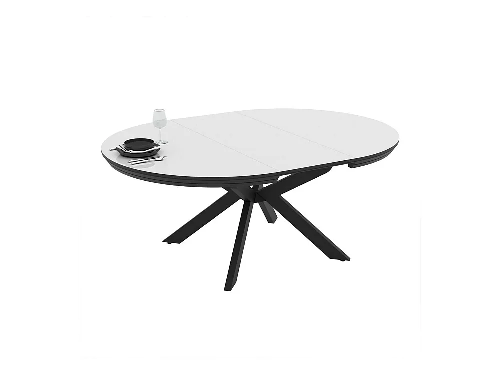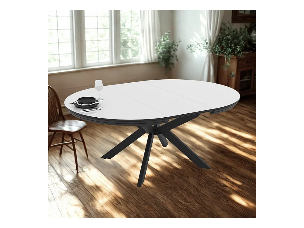 Tavolo rotondo allungabile Raven con piano bianco opaco e gambe shangai nero 120x120x75H