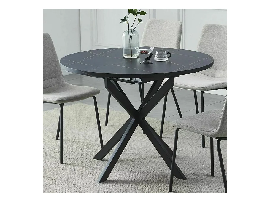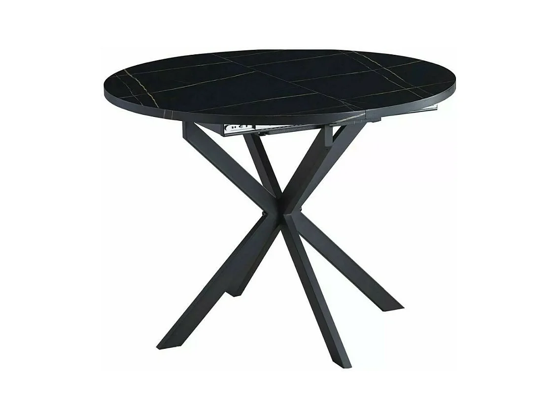 Tavolo rotondo allungabile nero 100 cm stile marmo Larry gambe in metallo