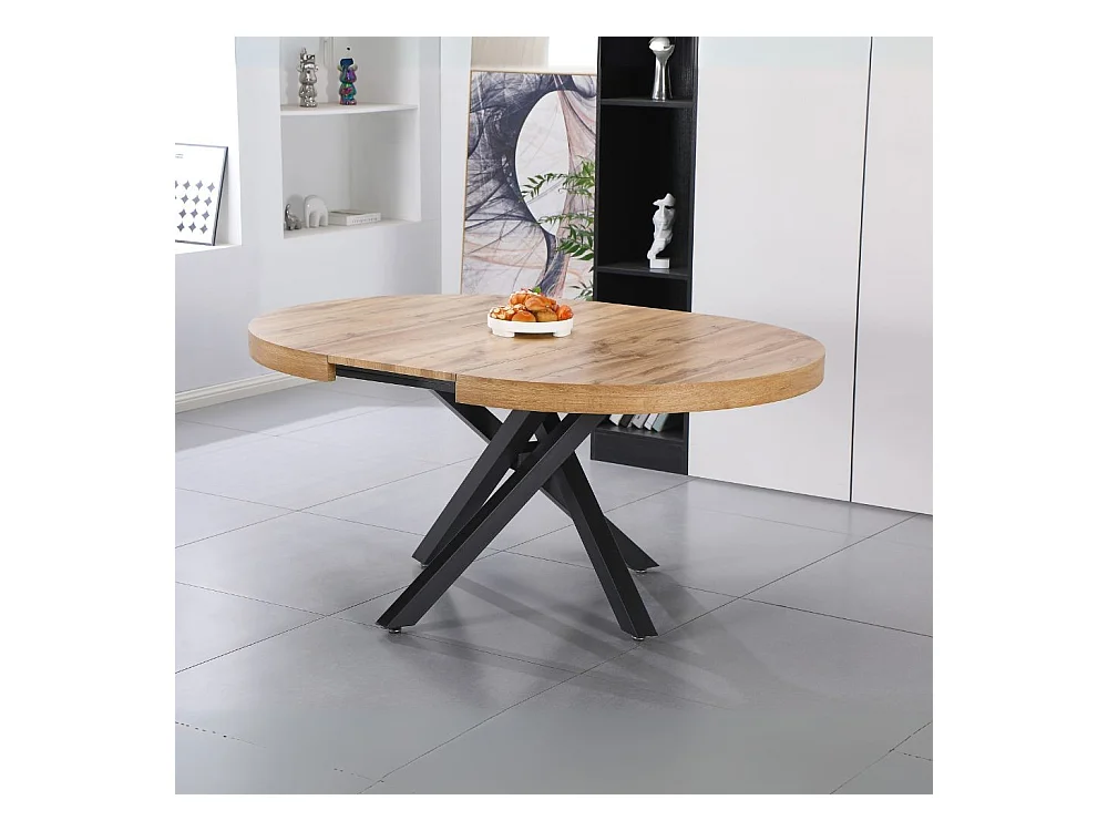 Tavolo rotondo allungabile Raven con piano rovere e gambe shangai nero 120x120x75H