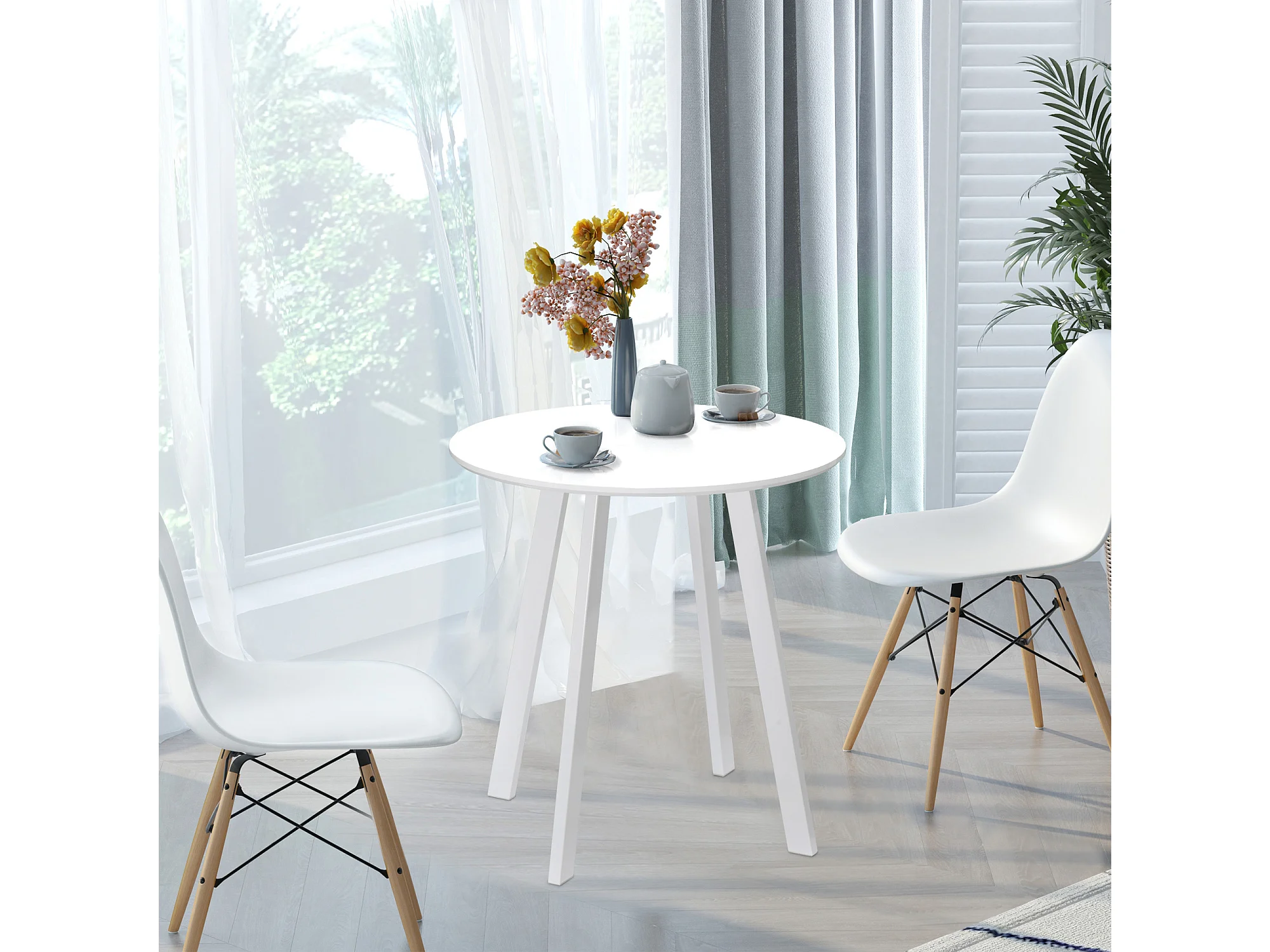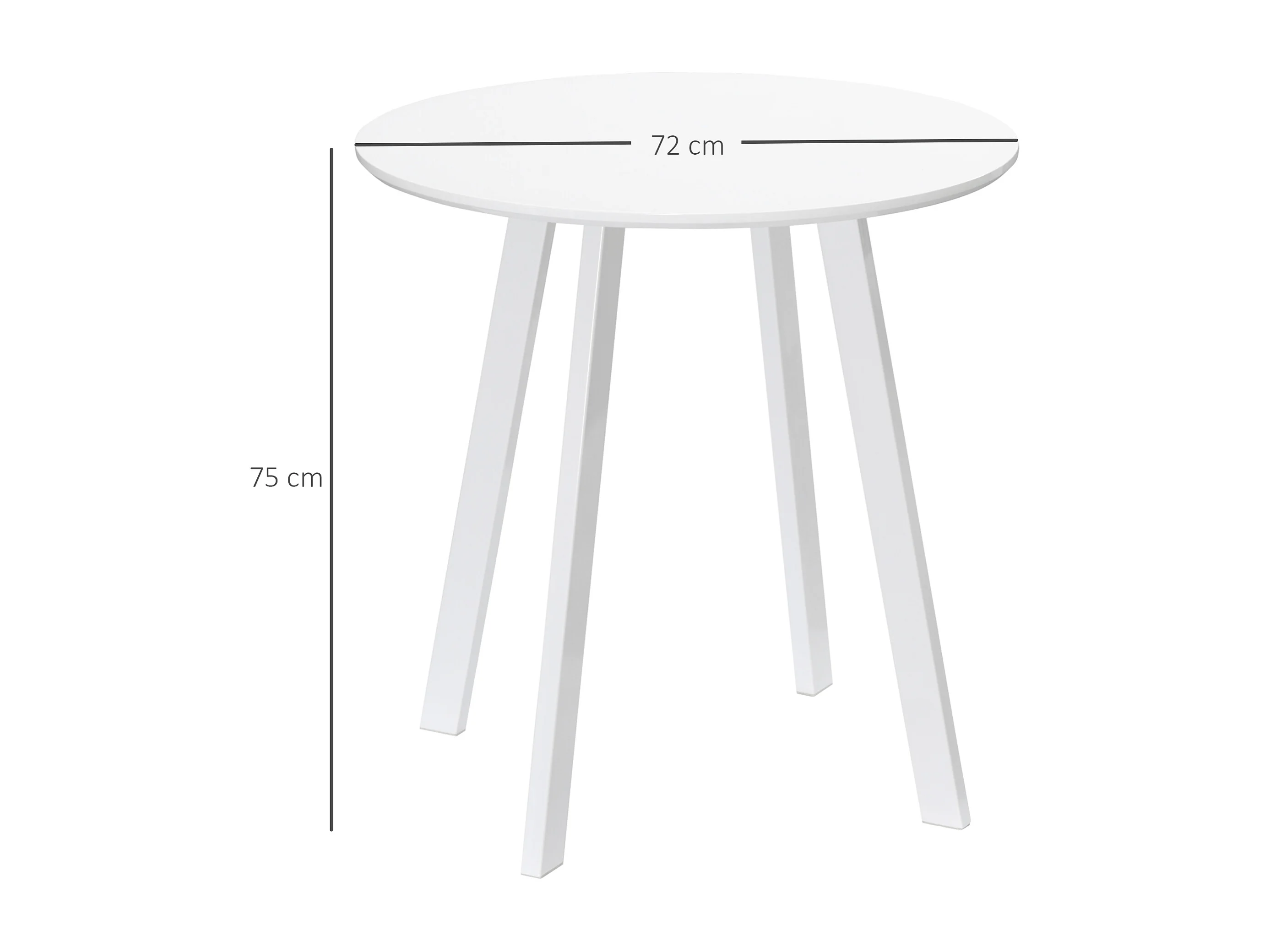Tavolo rotondo da cucina in MDF metallo, tavolo da pranzo e da pranzo, pieds biseautés, bianco 72x72x75 cm