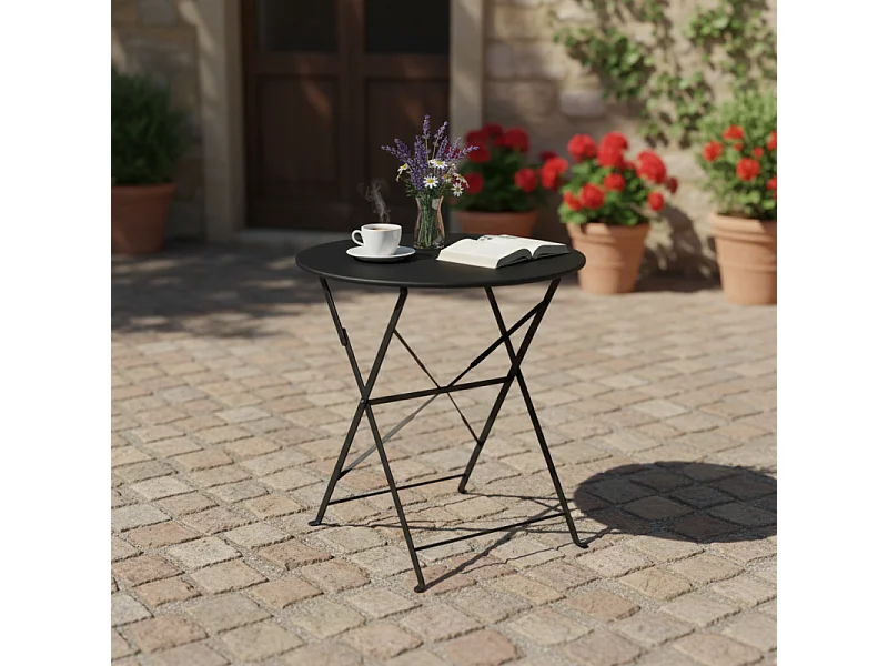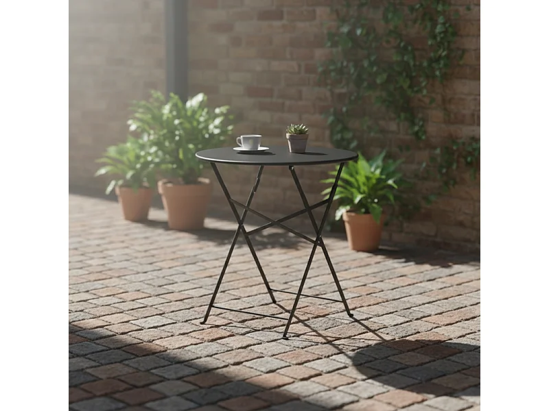 Tavolo rotondo da esterno pieghevole BISTROT - Nero