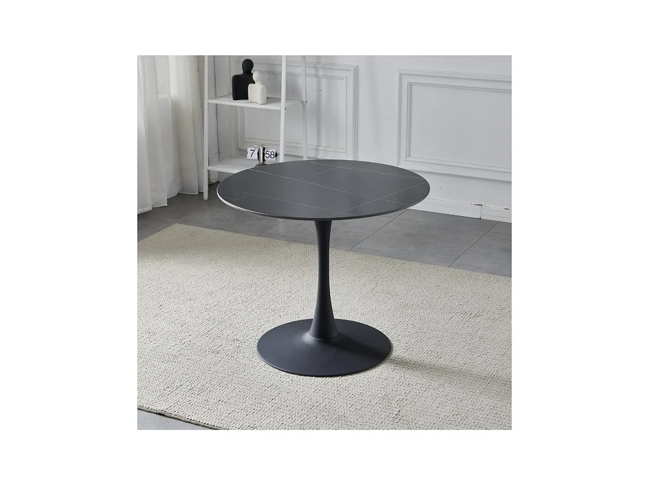 Tavolo rotondo Dot piano ceramica effetto marmo nero e oro