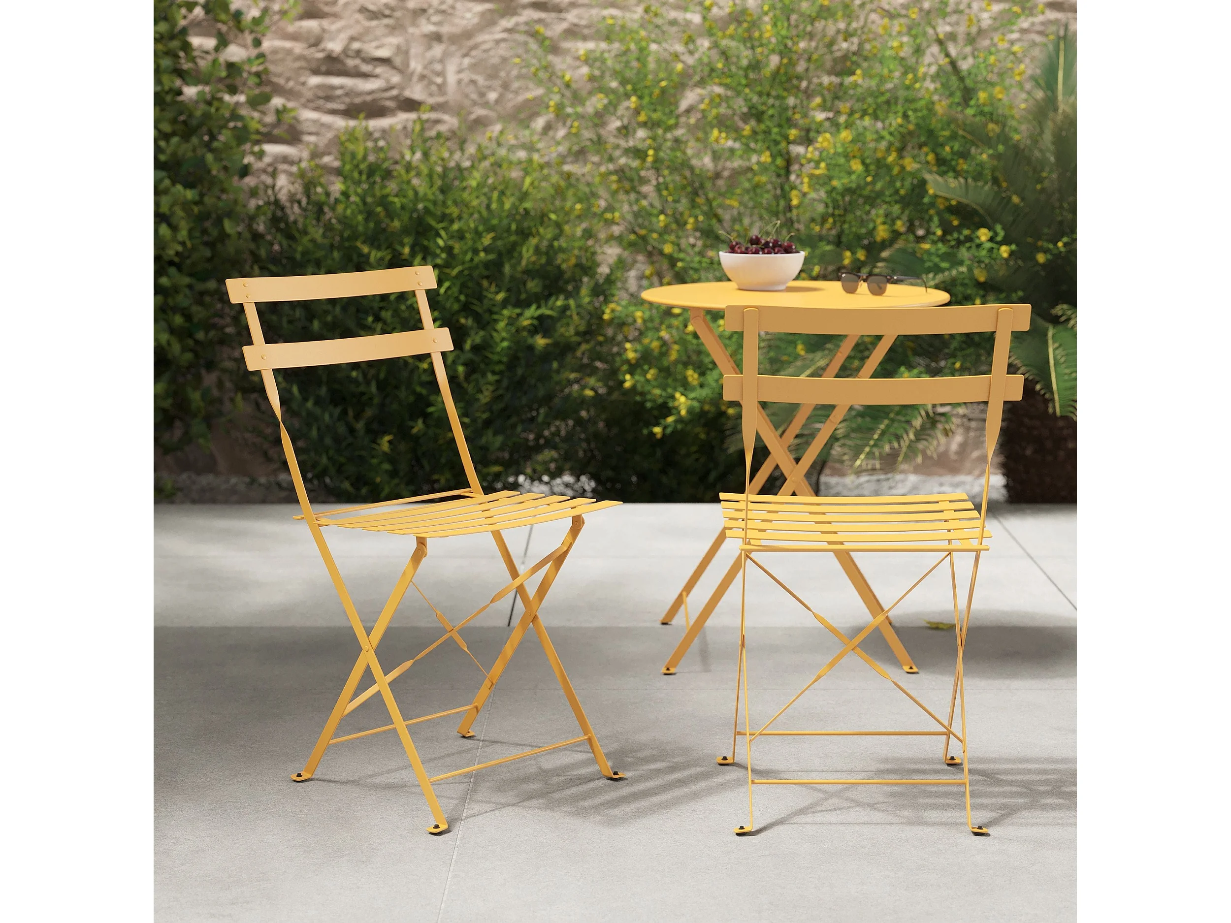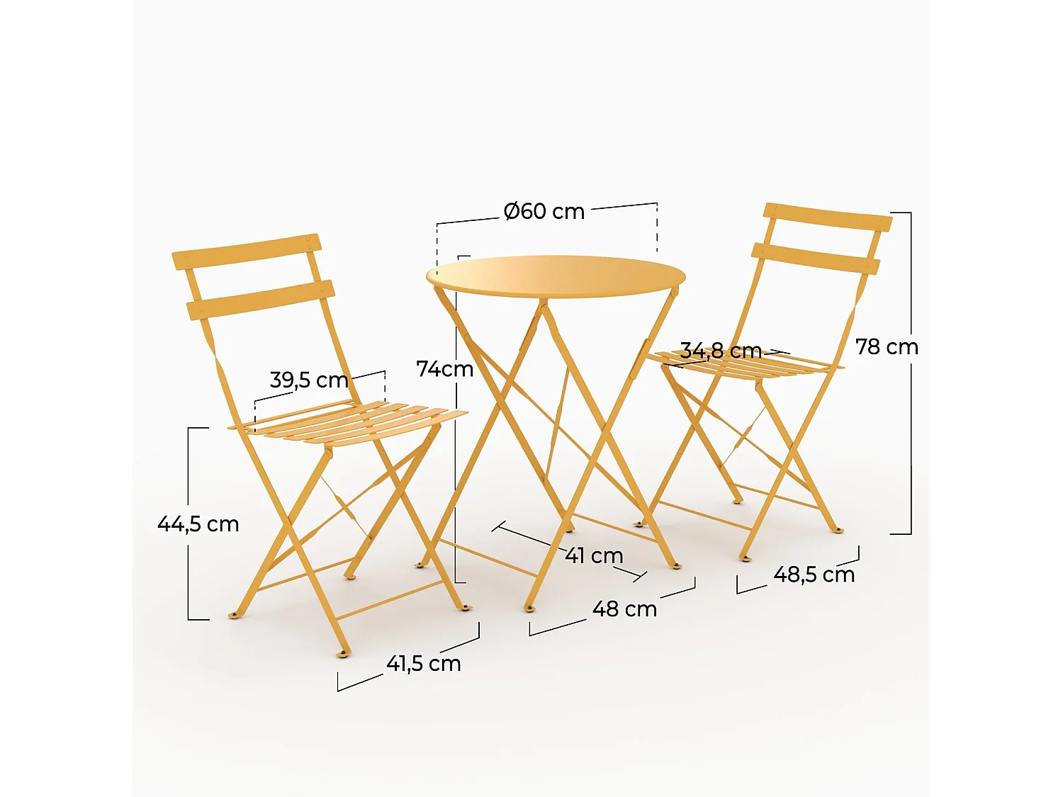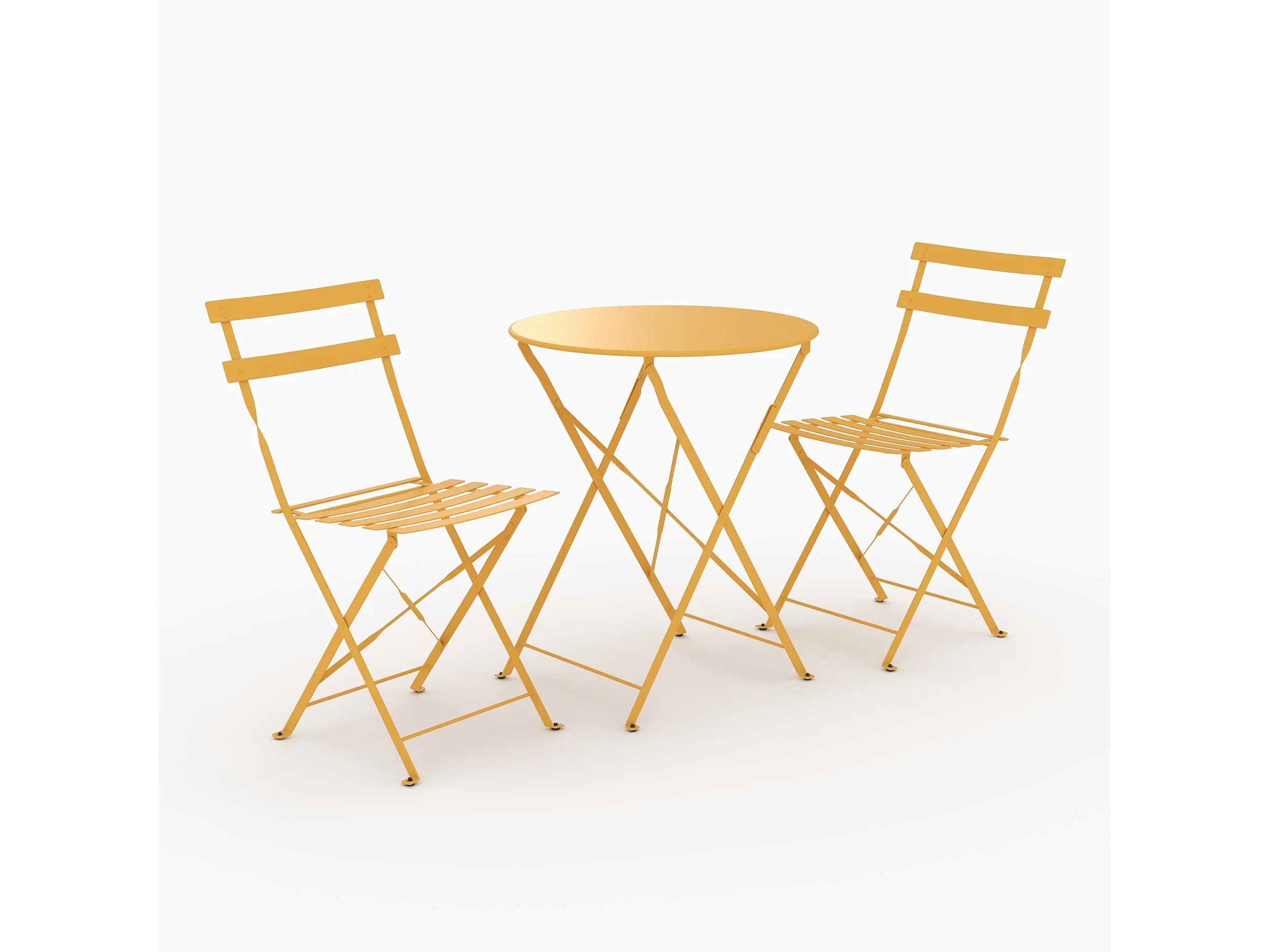 Tavolo rotondo e sedie pieghevoli da giardino 2 posti gialle - Kayla
