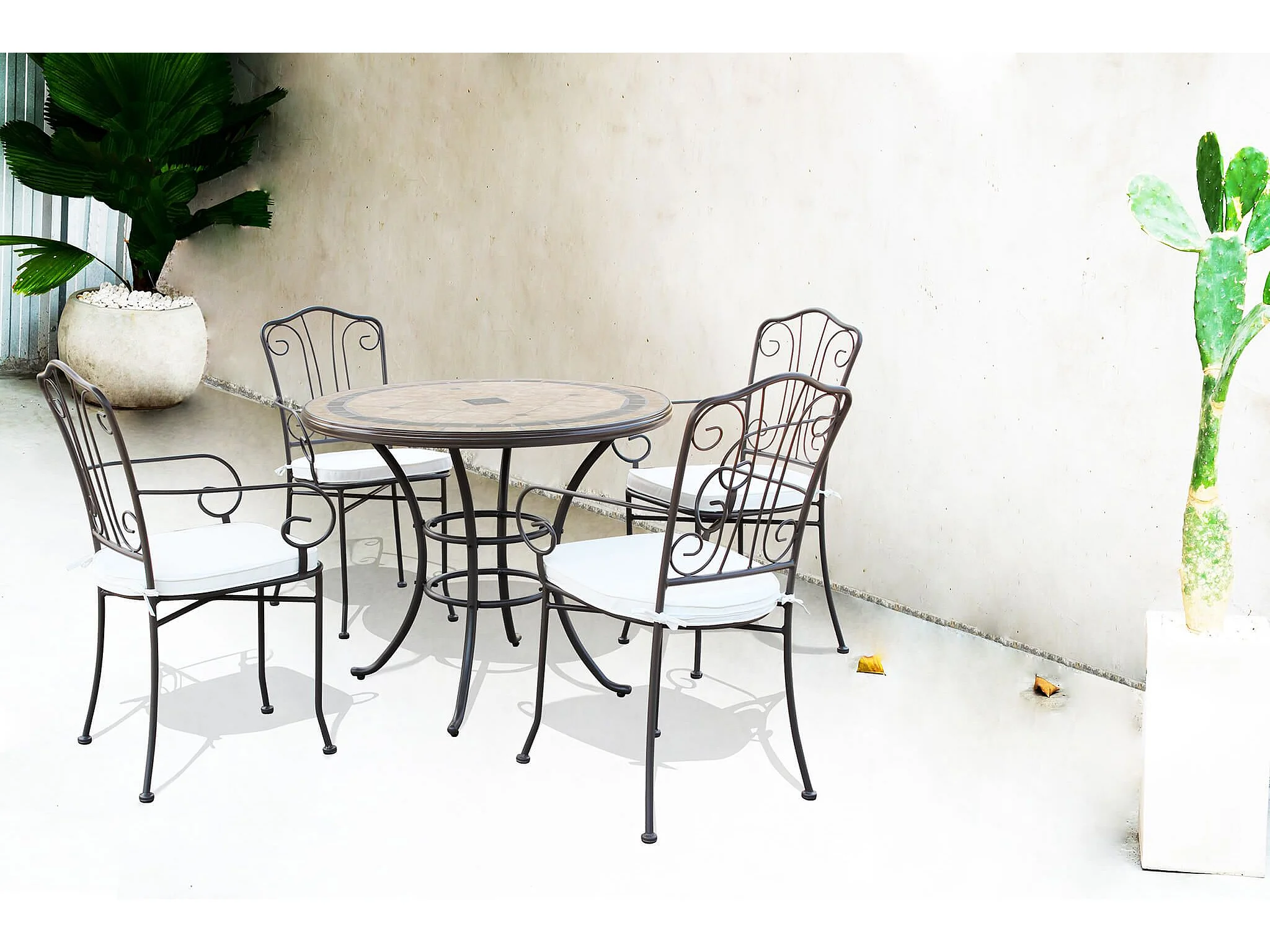 MilaniHome.it - Tavolo Rotondo Fisso In Ferro Diametro 90 Piano In Mosaico Per Esterno Giardino, Portico, Ristorante, Gelateria Bar Hotel Albergodi coloreTaupe
