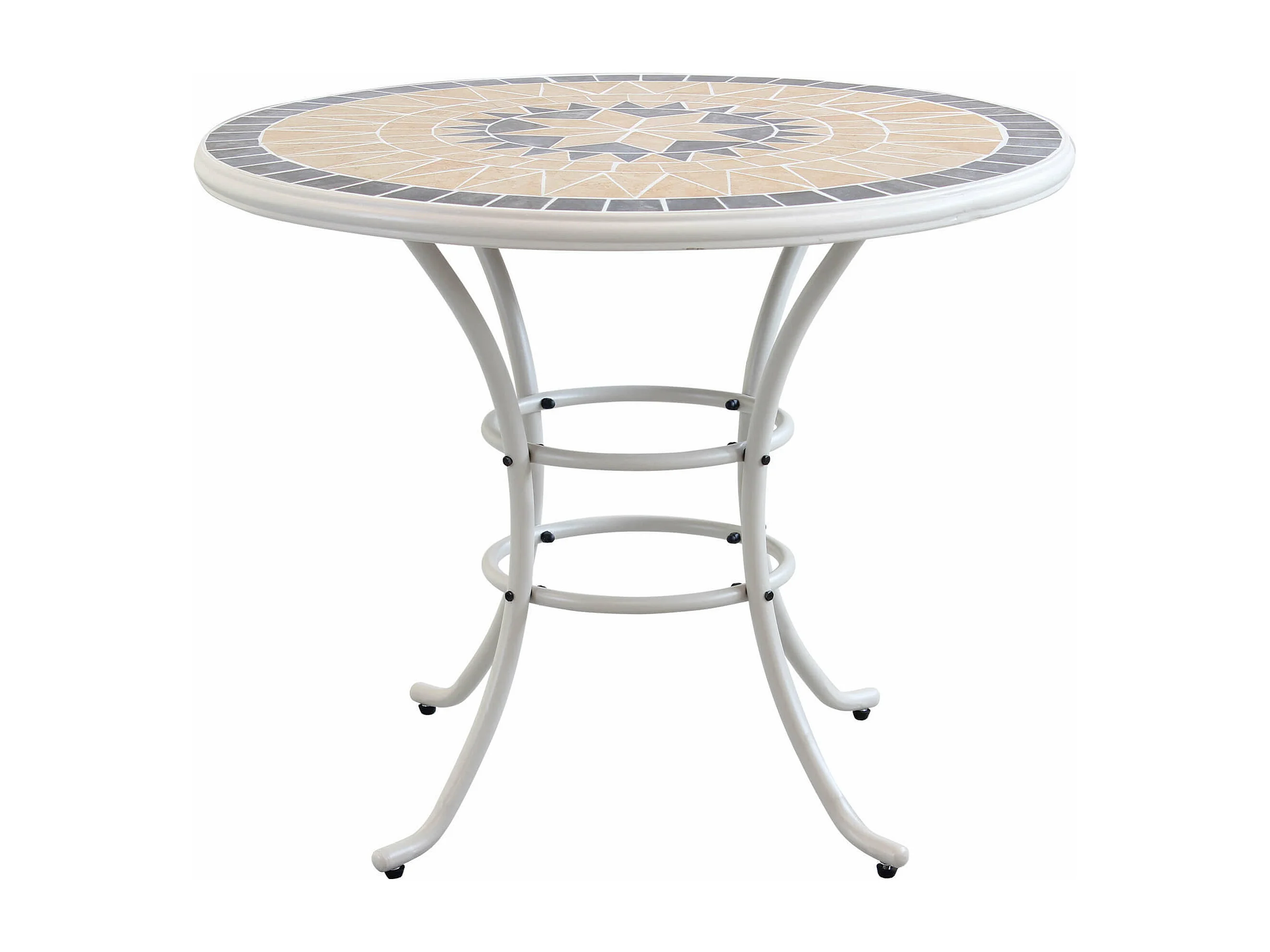 MilaniHome.it - Tavolo Rotondo Fisso In Ferro Diametro 90 Piano In Mosaico Per Esterno Giardino, Portico, Ristorante, Gelateria Bar Hotel Albergodi coloreTortora
