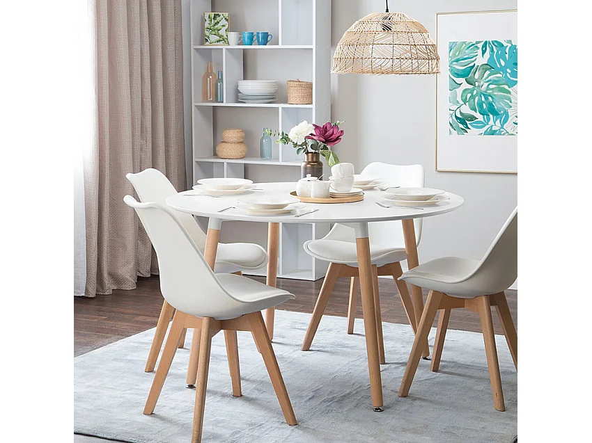 Tavolo rotondo in legno design wooden 100cm cucina bar ristorante Moss - Bianco
