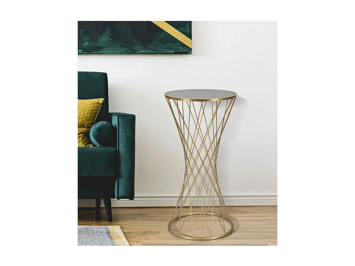 Tavolo rotondo in metallo dorato con piano specchio Ø cm 40x80