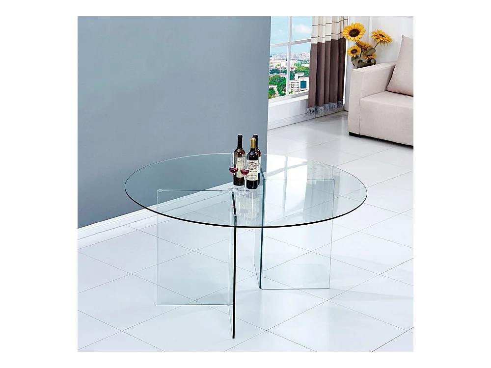 Tavolo rotondo Acacia in vetro trasparente temperato 137x137x77H