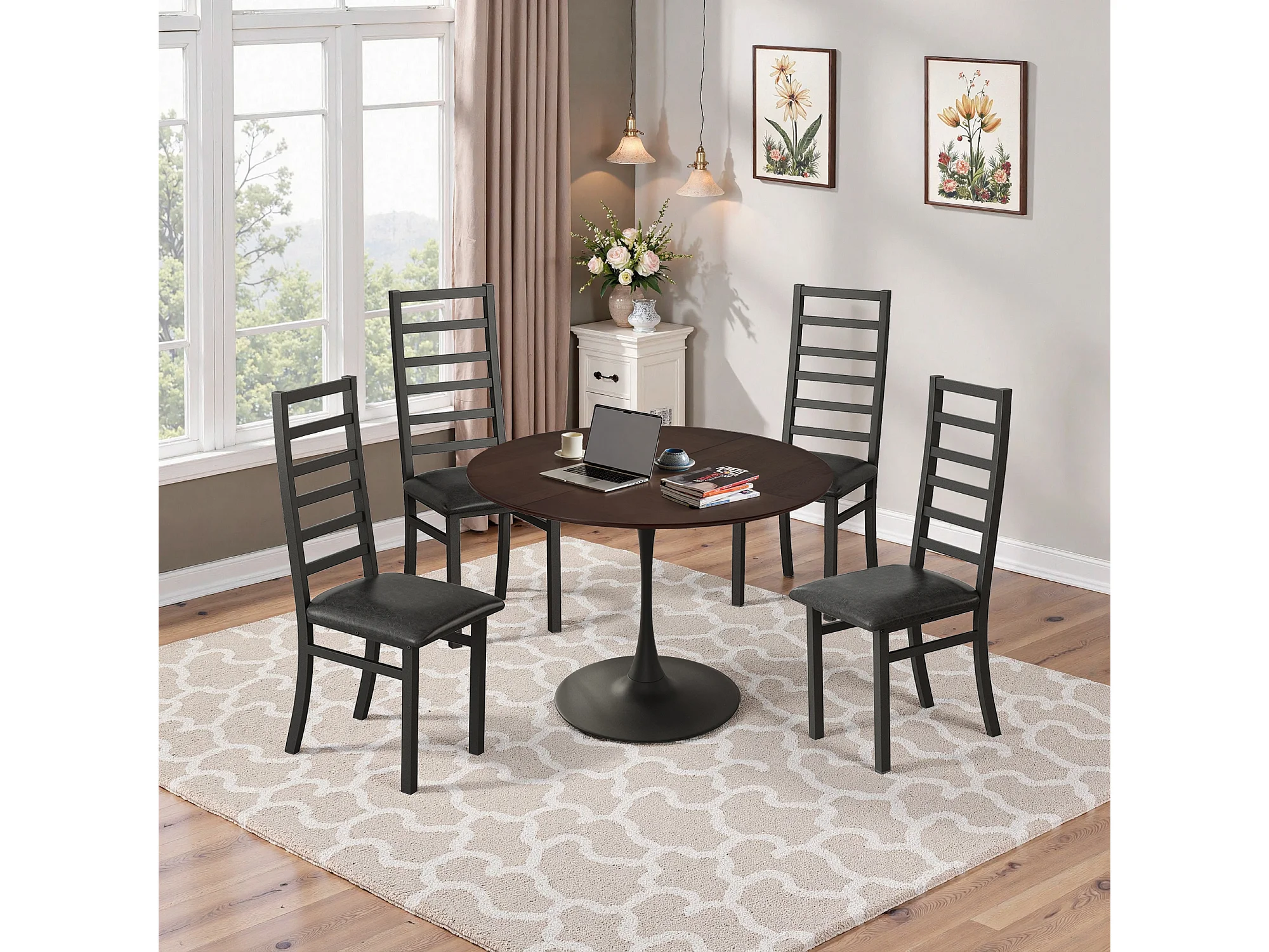 Tavolo da pranzo rotondo moderno, quattro piani in MDF, base in metallo, nero (120x120x75 cm)