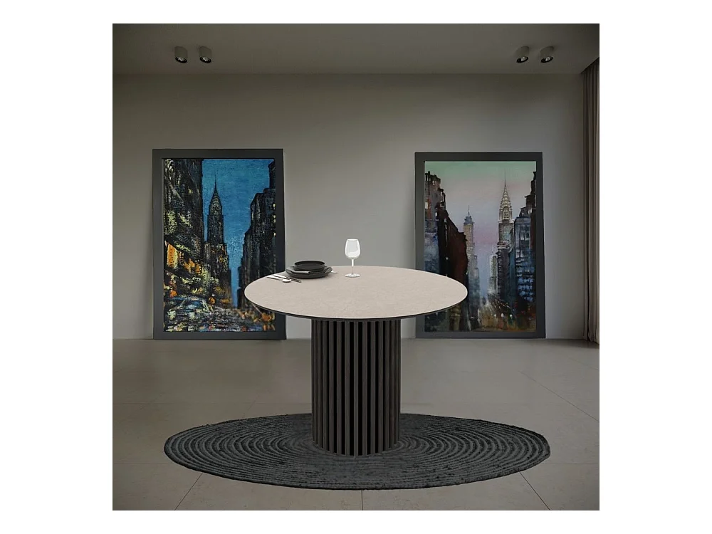 Tavolo rotondo allungabile Dobok piano cashmere 126x126x76H con gambe nere