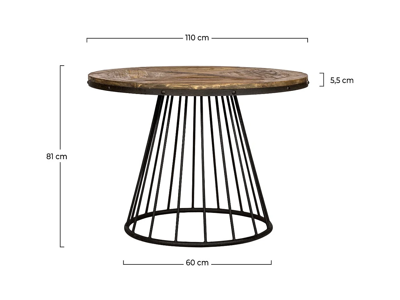 Tavolo rotondo in legno di olmo 4 persone - Gaston