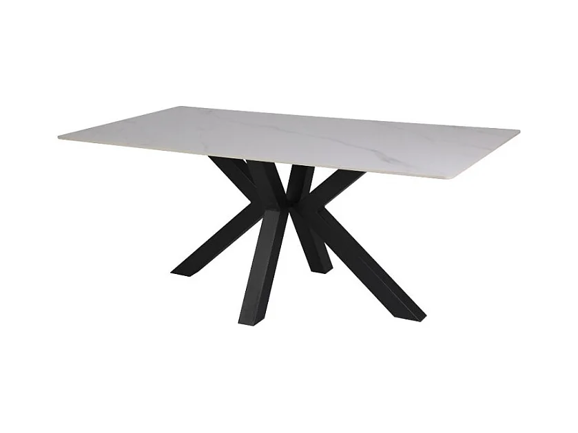 Tavolo Style con piano in ceramica effetto marmo bianco lucido e gambe nere