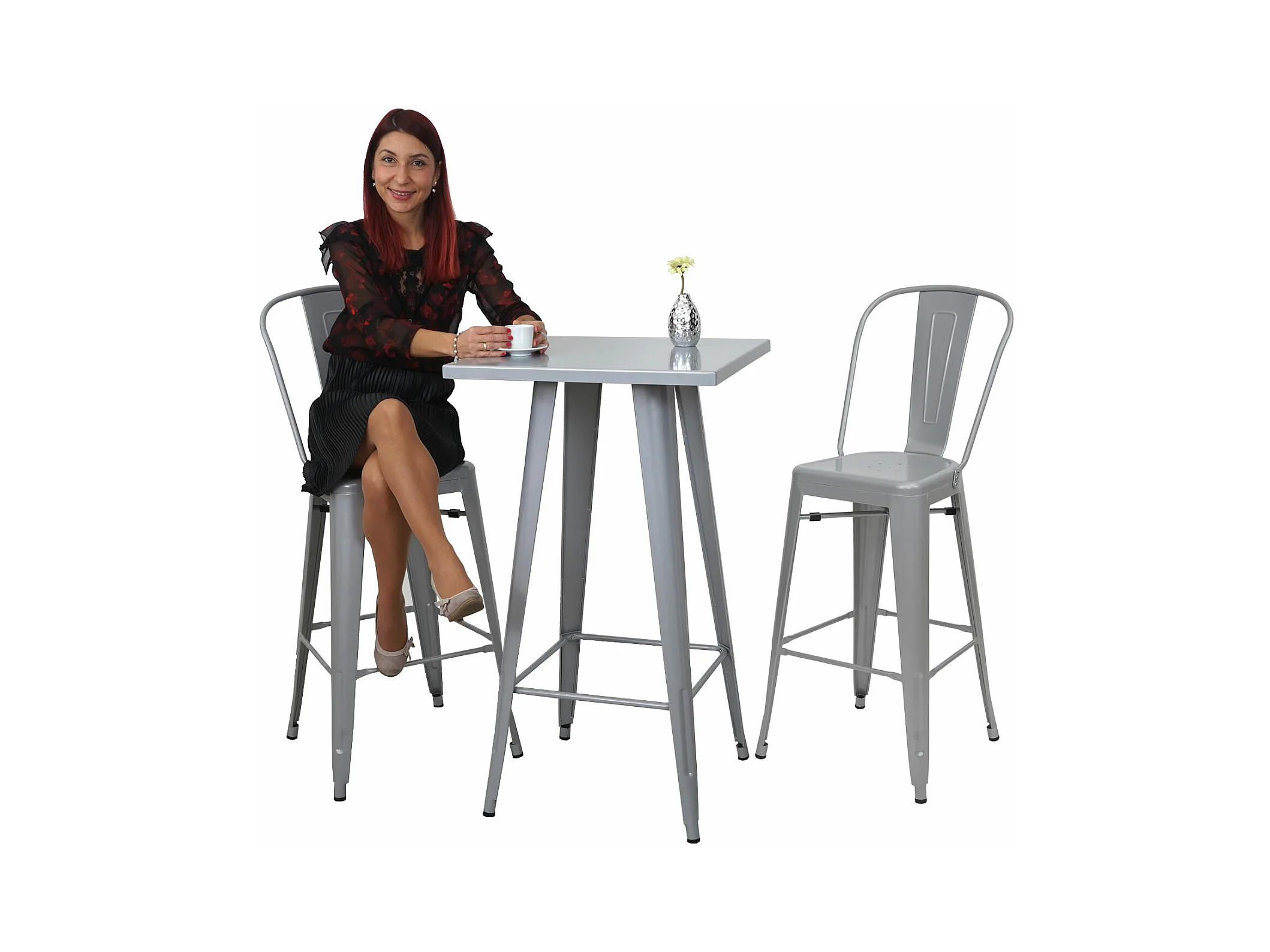 Tavolo tavolino bar quadrato design industriale HWC-A73 105x60x60cm metallo grigio