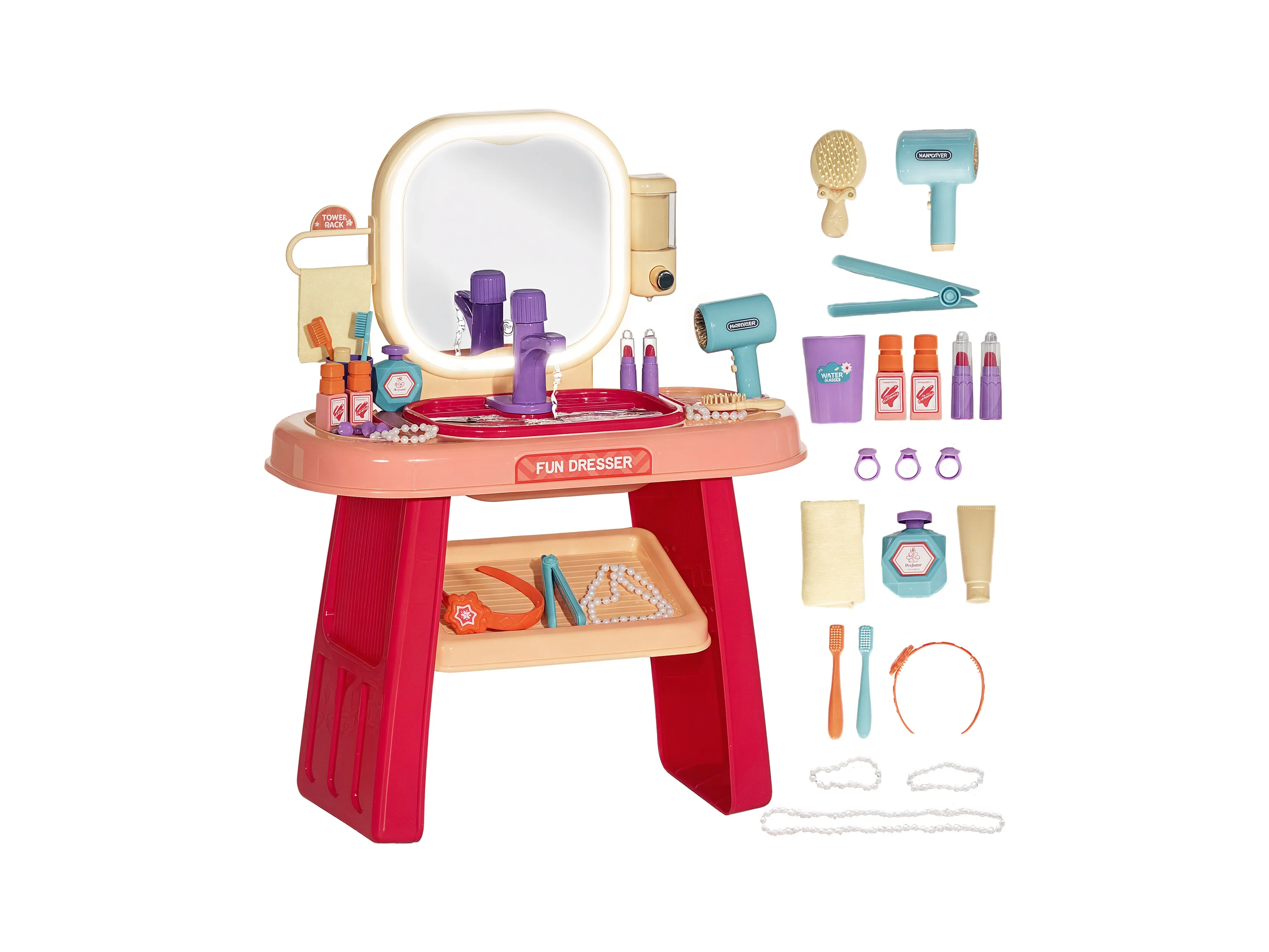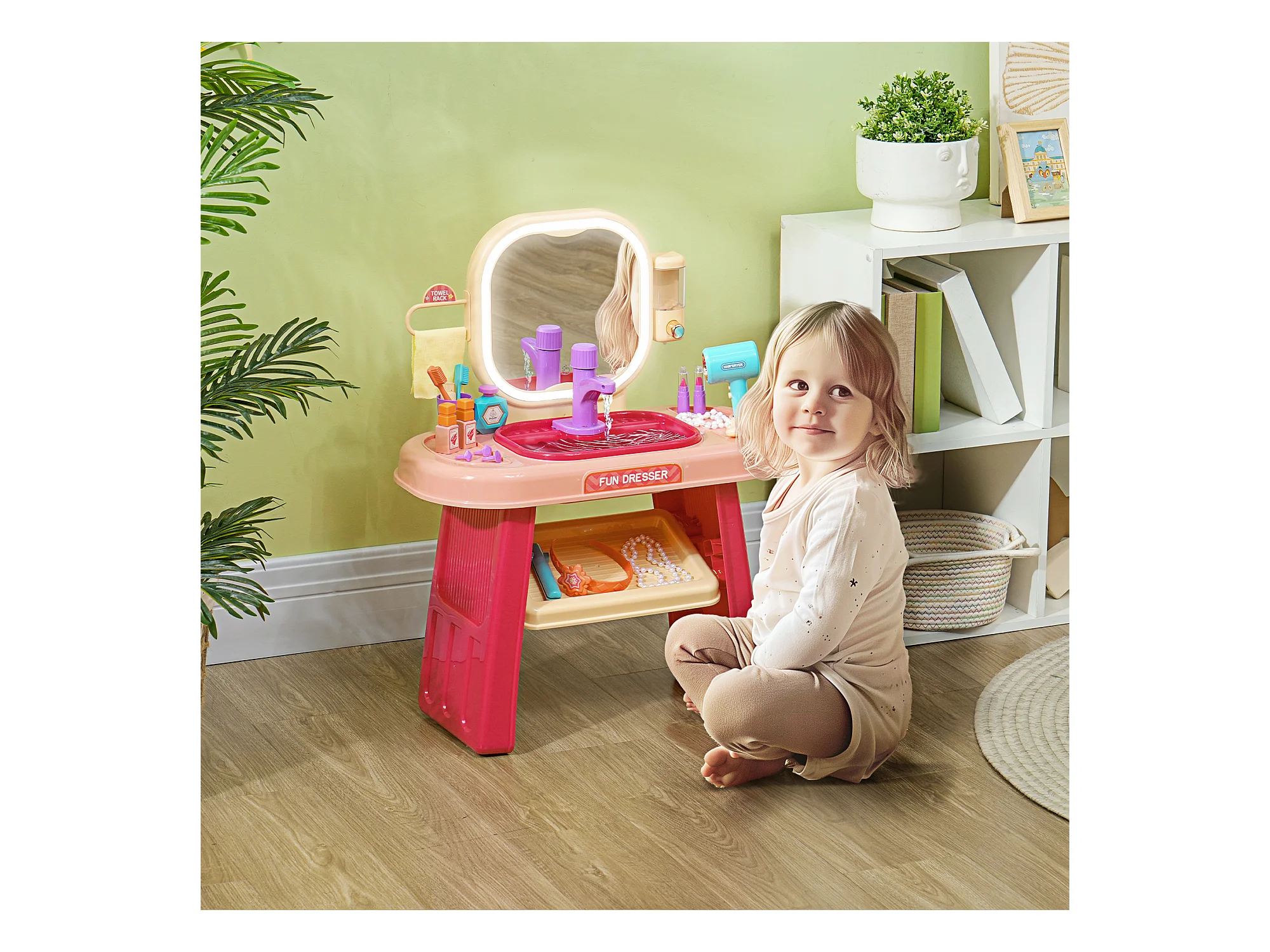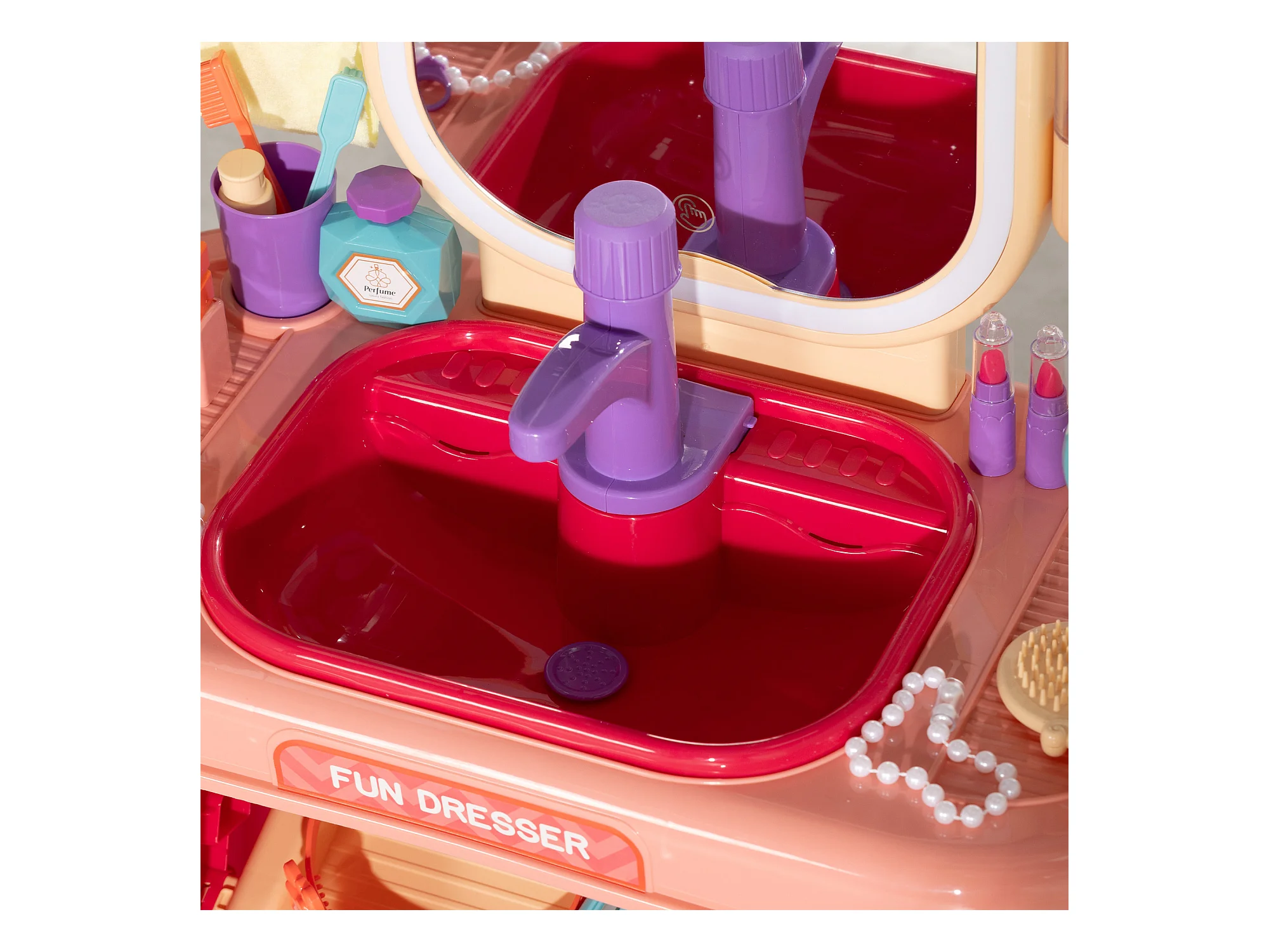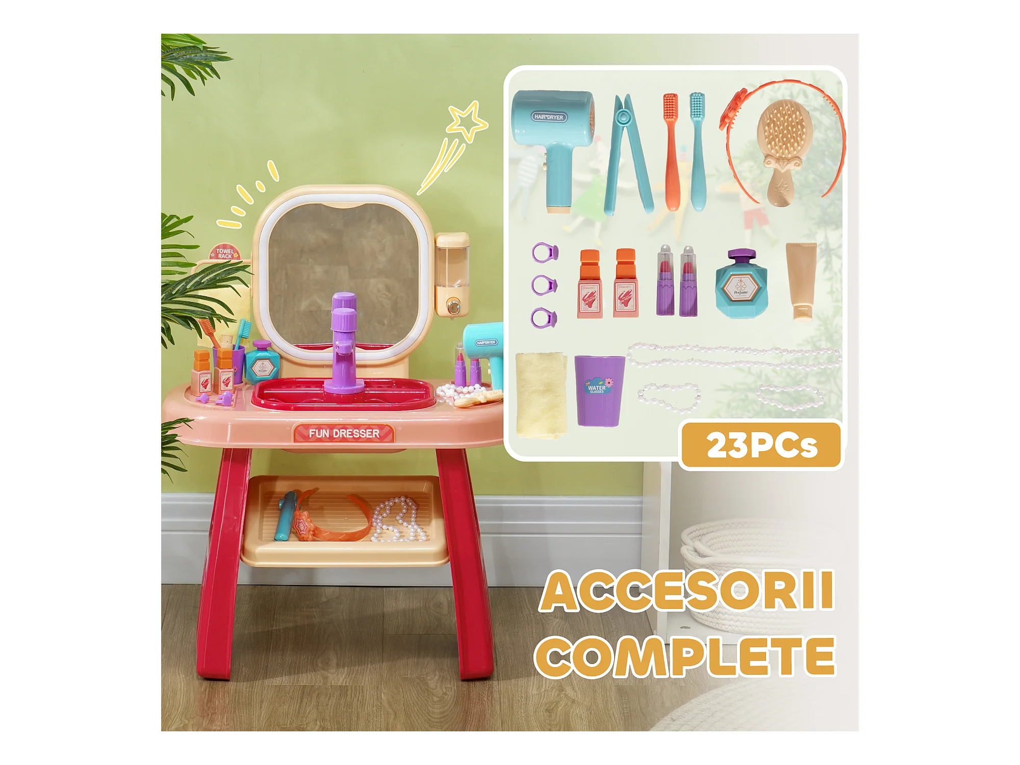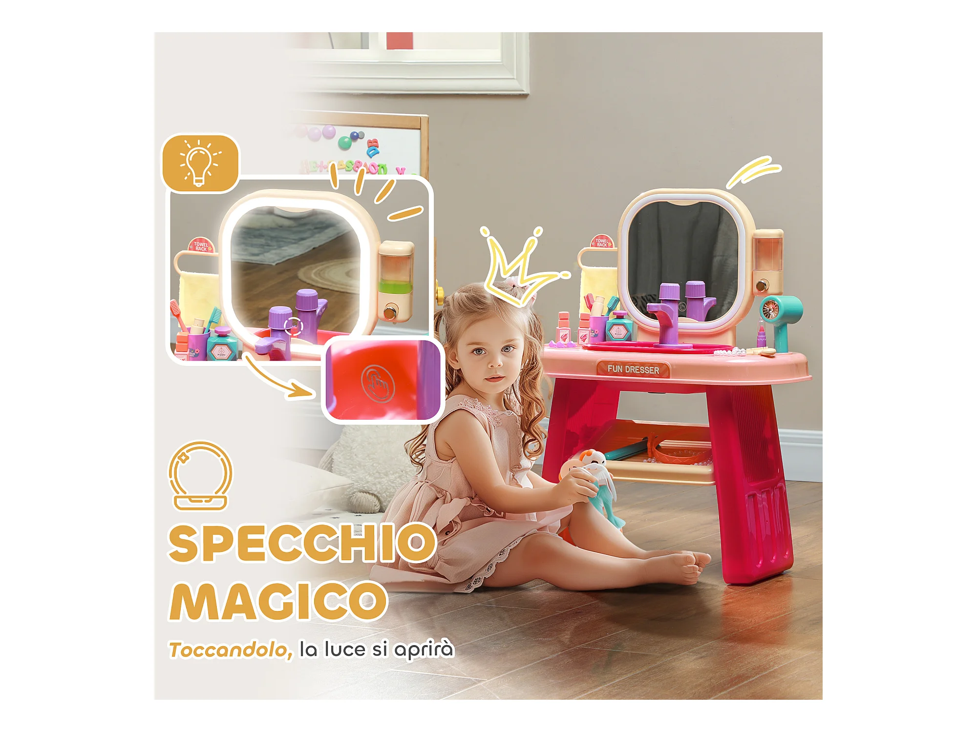 Tavolo toeletta per bambine con specchio in acrilico e rubinetto rosa