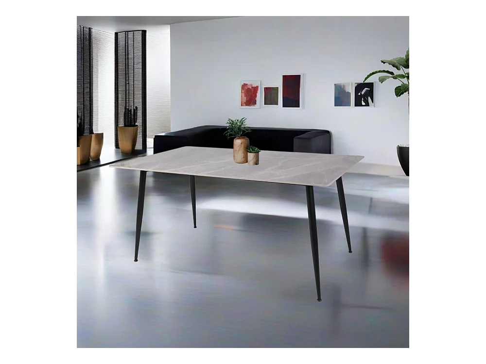 Tavolo Linus con piano in ceramica effetto marmo grigio e gambe in metallo nero 160x90x76H