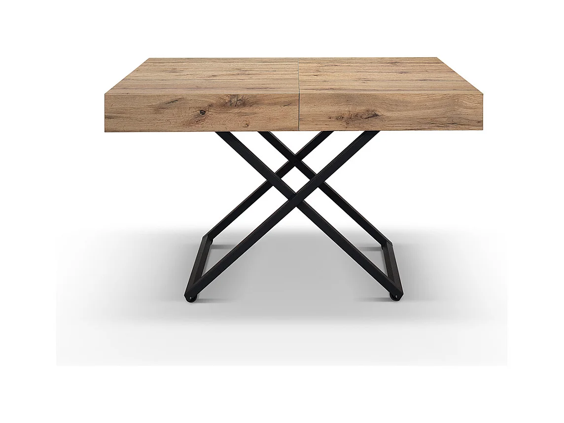 Tavolo Trasformabile Valentina, Tavolo Sollevabile, Tavolo Allungabile, Rovere Rustico, Nobilitato Melaminico,Gambe Metallo Nere, Da 120 a 220 cm,Made in Italy