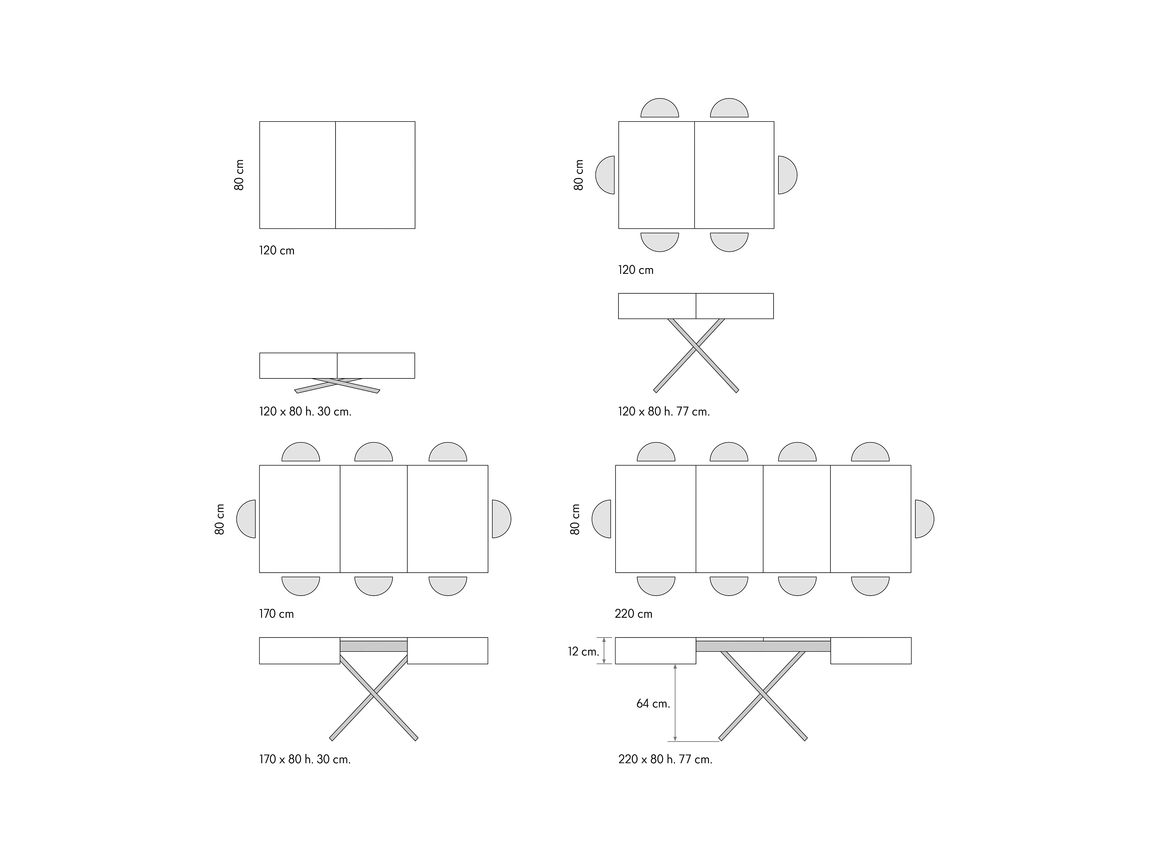 Tavolo Allungabile Flore, Gambe Incrociate, Made in Italy, 140 x 90 x 74 cm, Olmo Perla con Gamba Nera