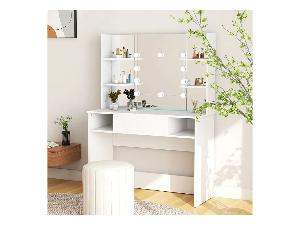 Tavolo trucco con illuminazione LED MDF bianco lucido