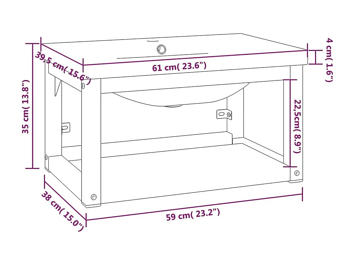 Mobile lavabo nero 59x37x59 cm in derivati del legno