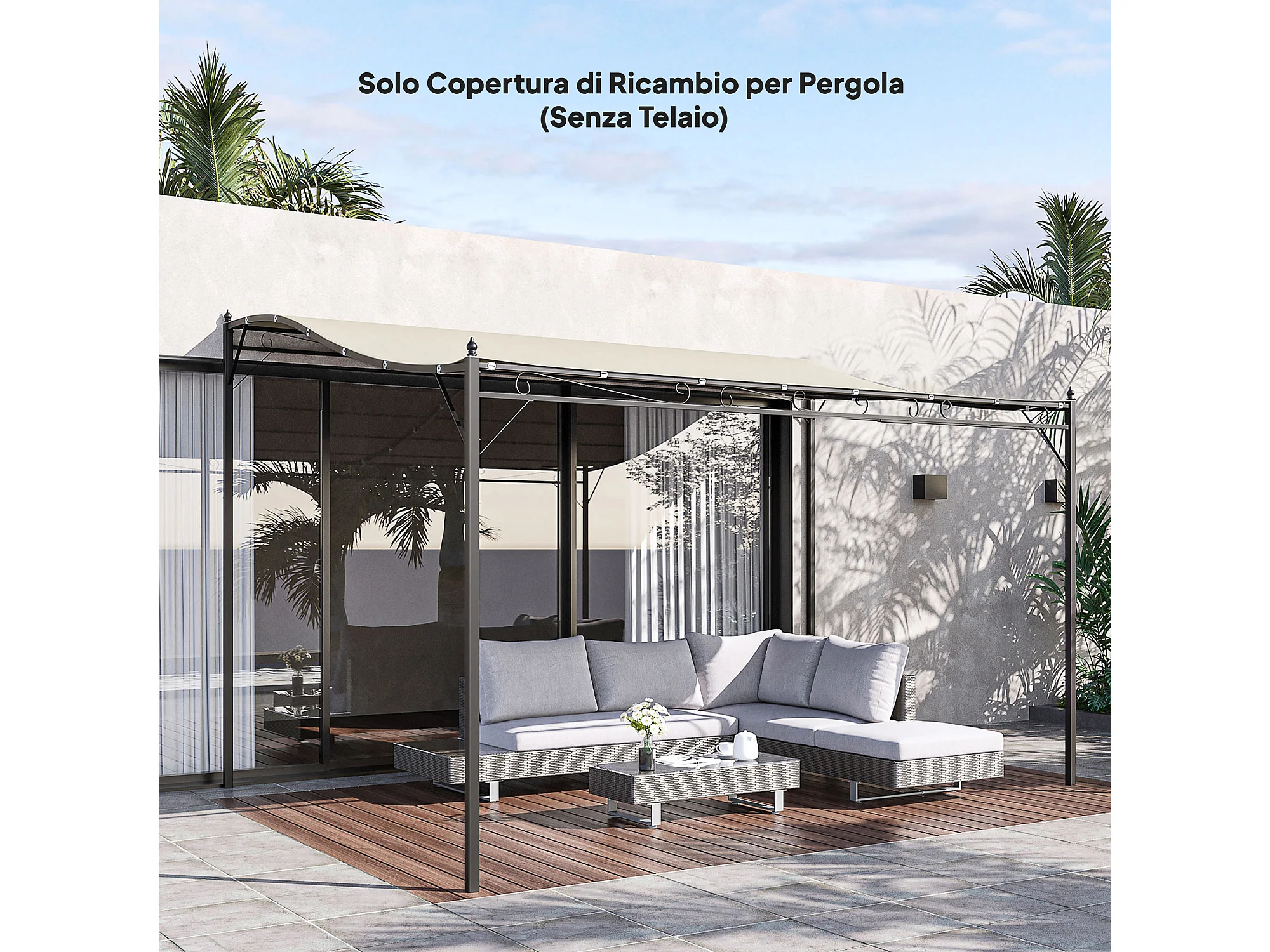 Telo di ricambio copertura tetto per gazebo Cadice poliestere 4x4m ~ avorio