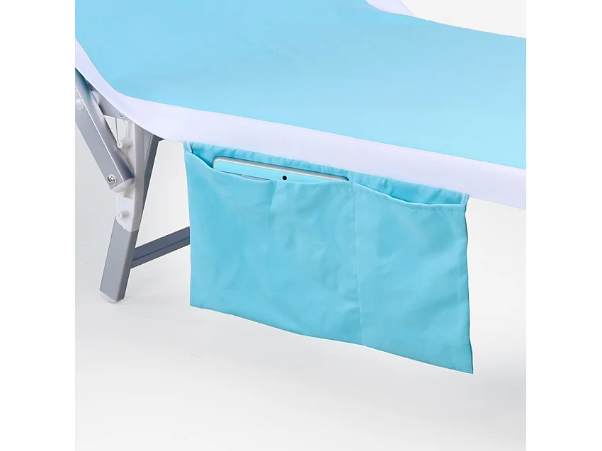 Telo copri lettino mare spiaggia piscina asciugamano microfibra 2 tasche - Azzurro