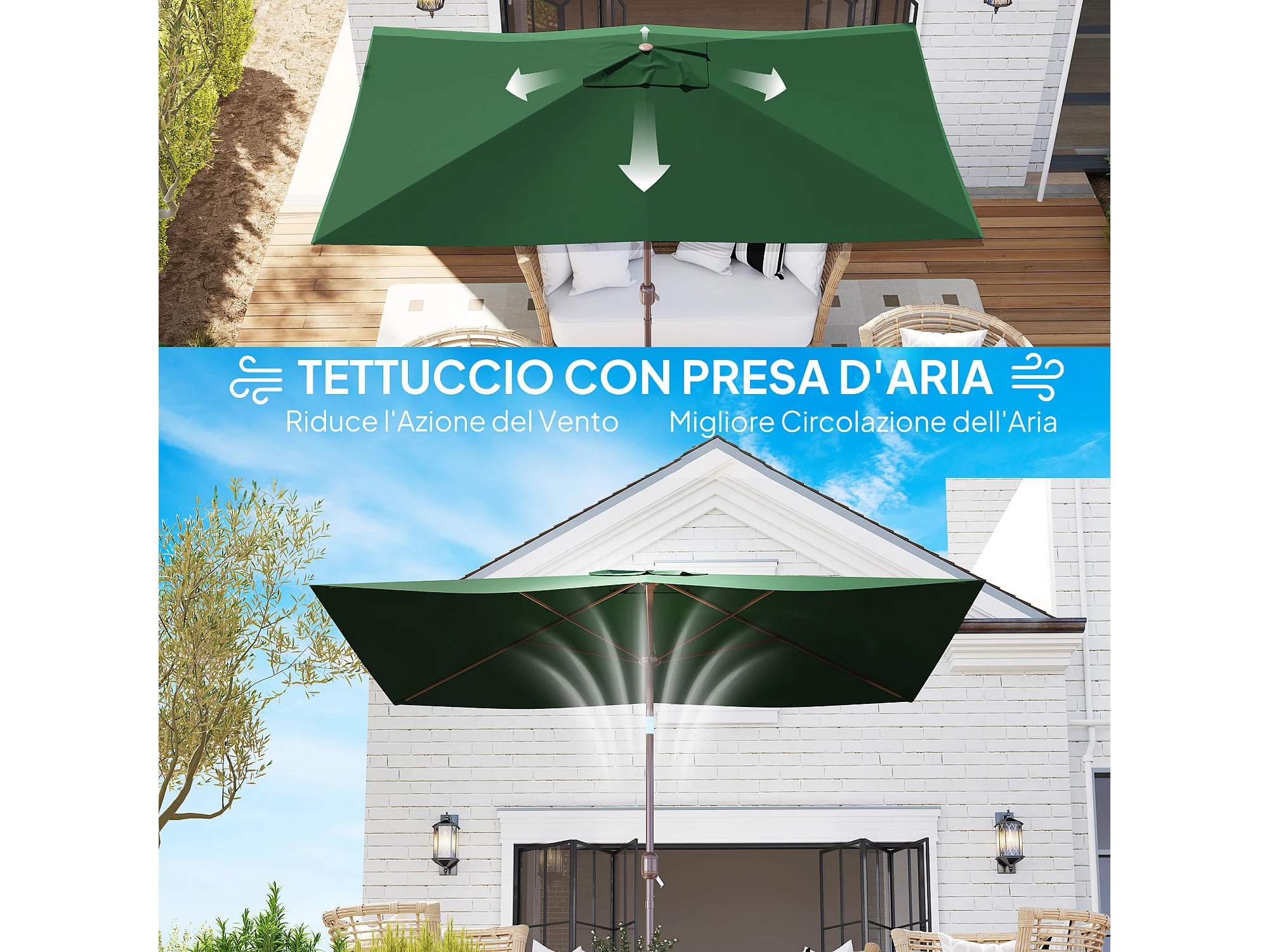 Telo di ricambio per ombrellone 3x2 m e 6 stecche verde