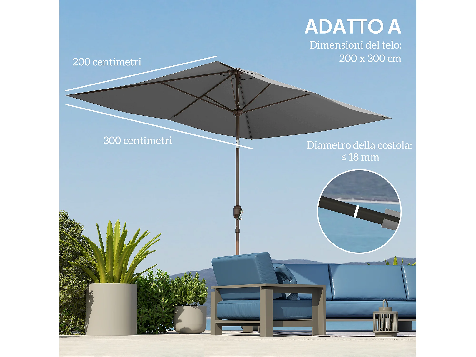 Telo di ricambio per ombrellone rettangolare 3x2m in poliestere grigio