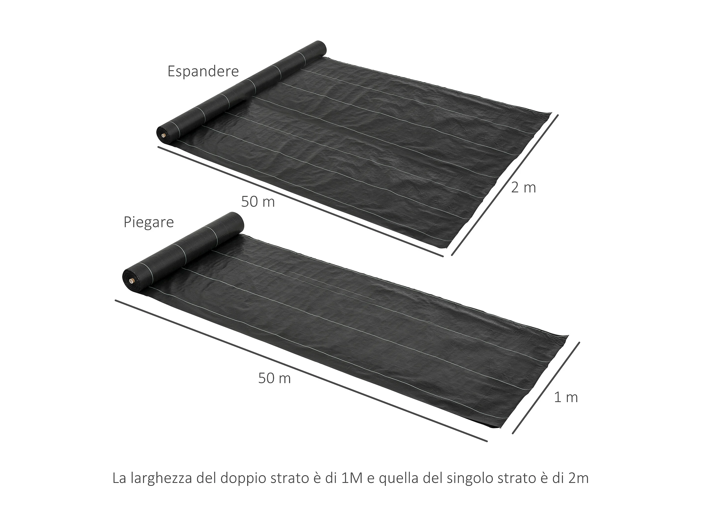 Telo per pacciamatura 50x2 m traspirante e anti-uv in pp nero