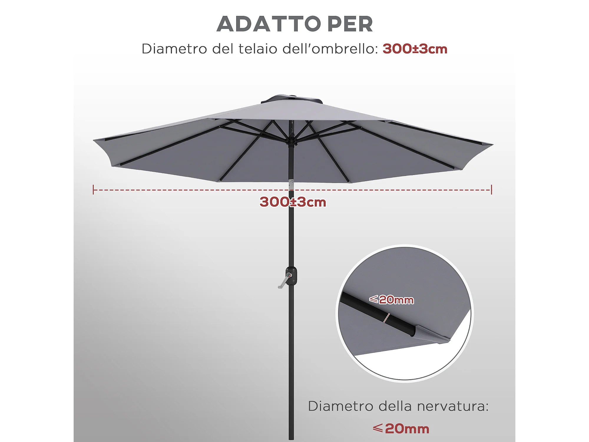 Telo ricambio ombrellone resistente all'acqua con presa d'aria grigio