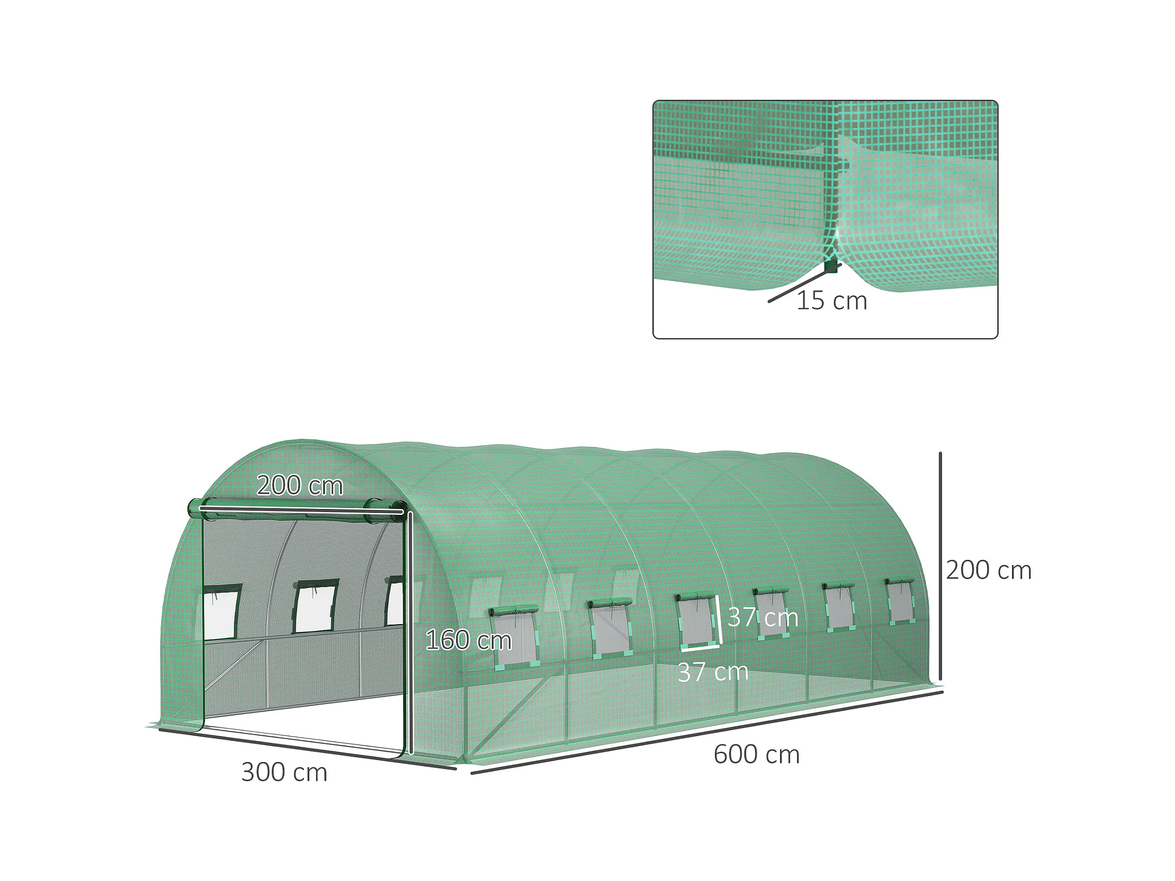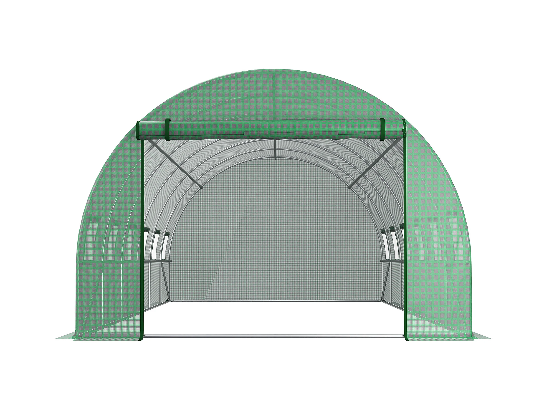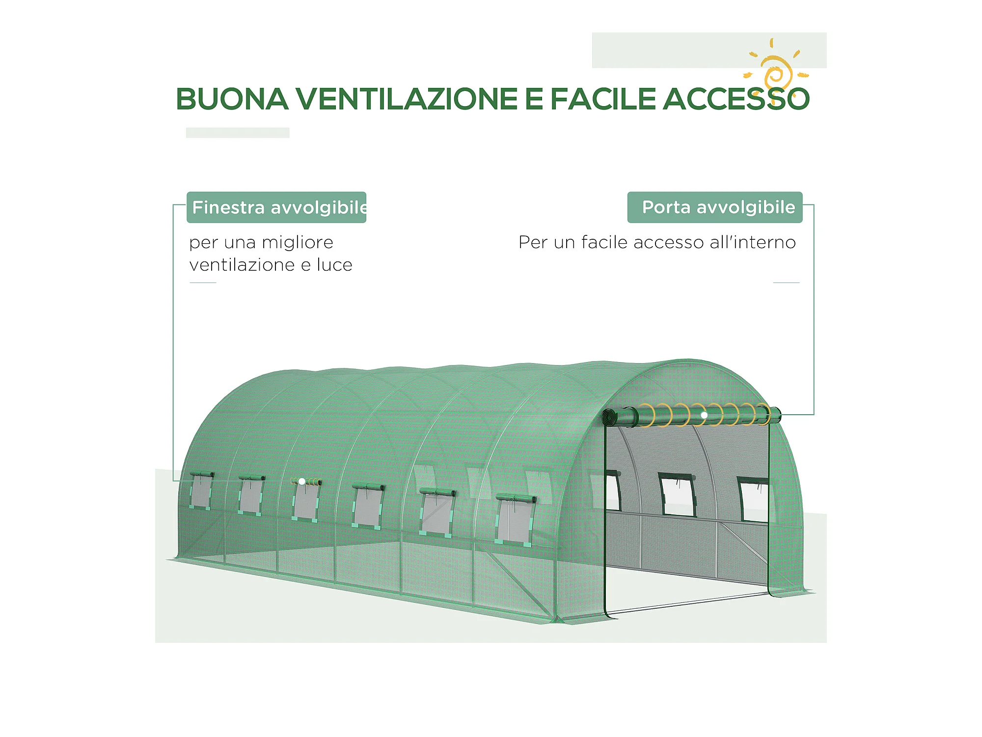 Telo per serra in pe con 12 finestre e bordi interrati verde