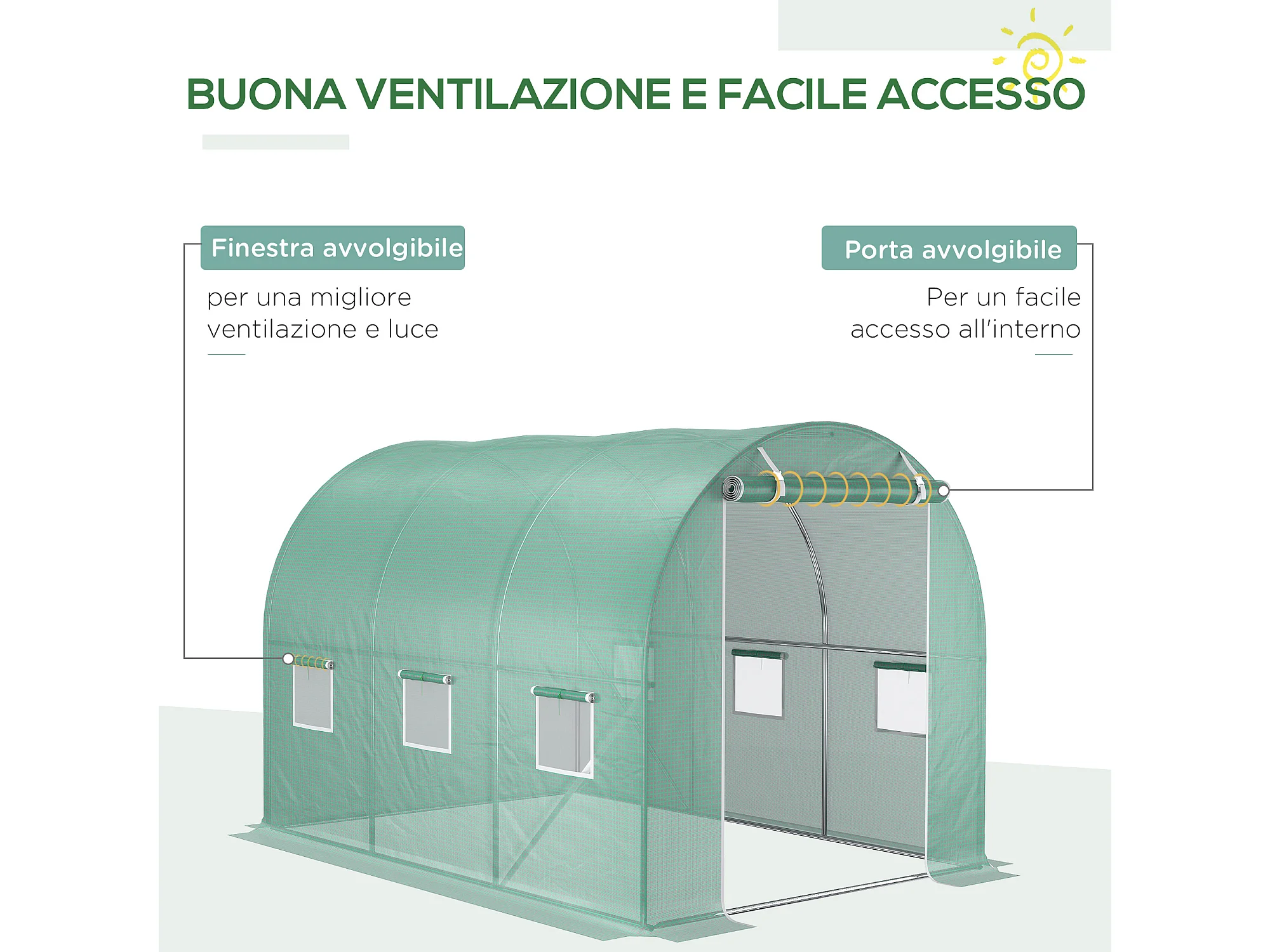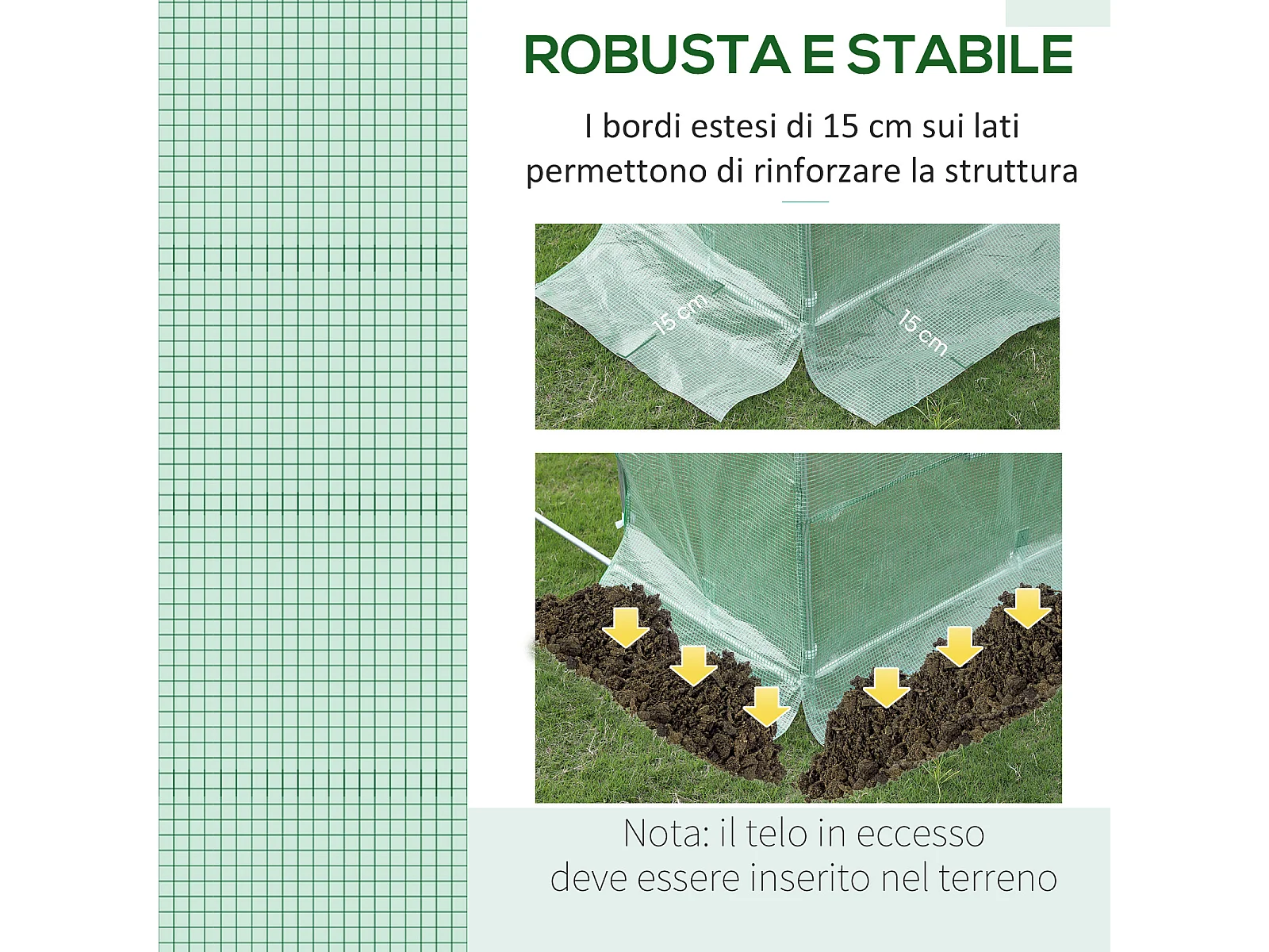 Telo per serra in pe da 6 finestre con bordi interrati verde