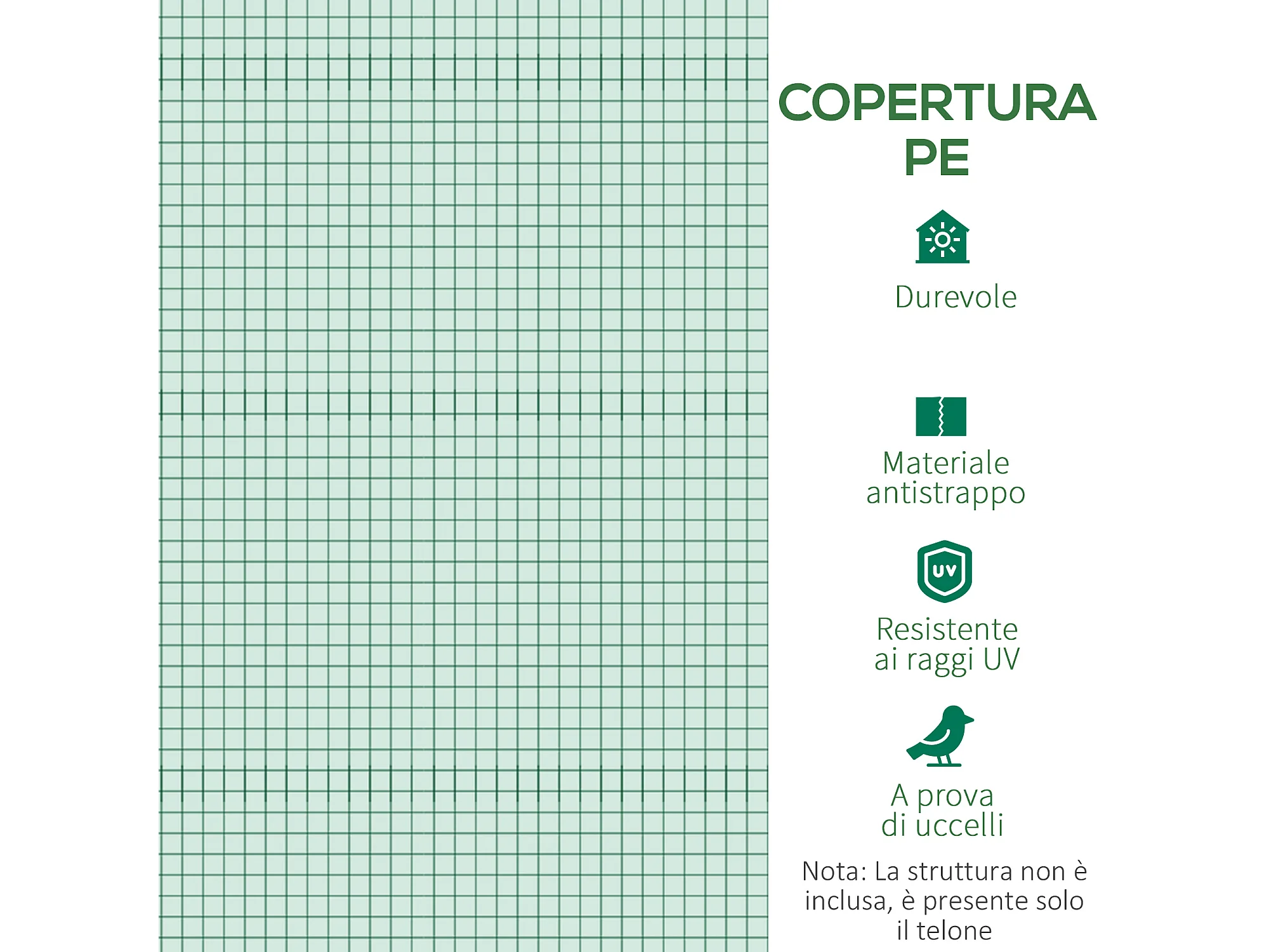 Copertura di ricambio per serra con porta e finestre in pe verde