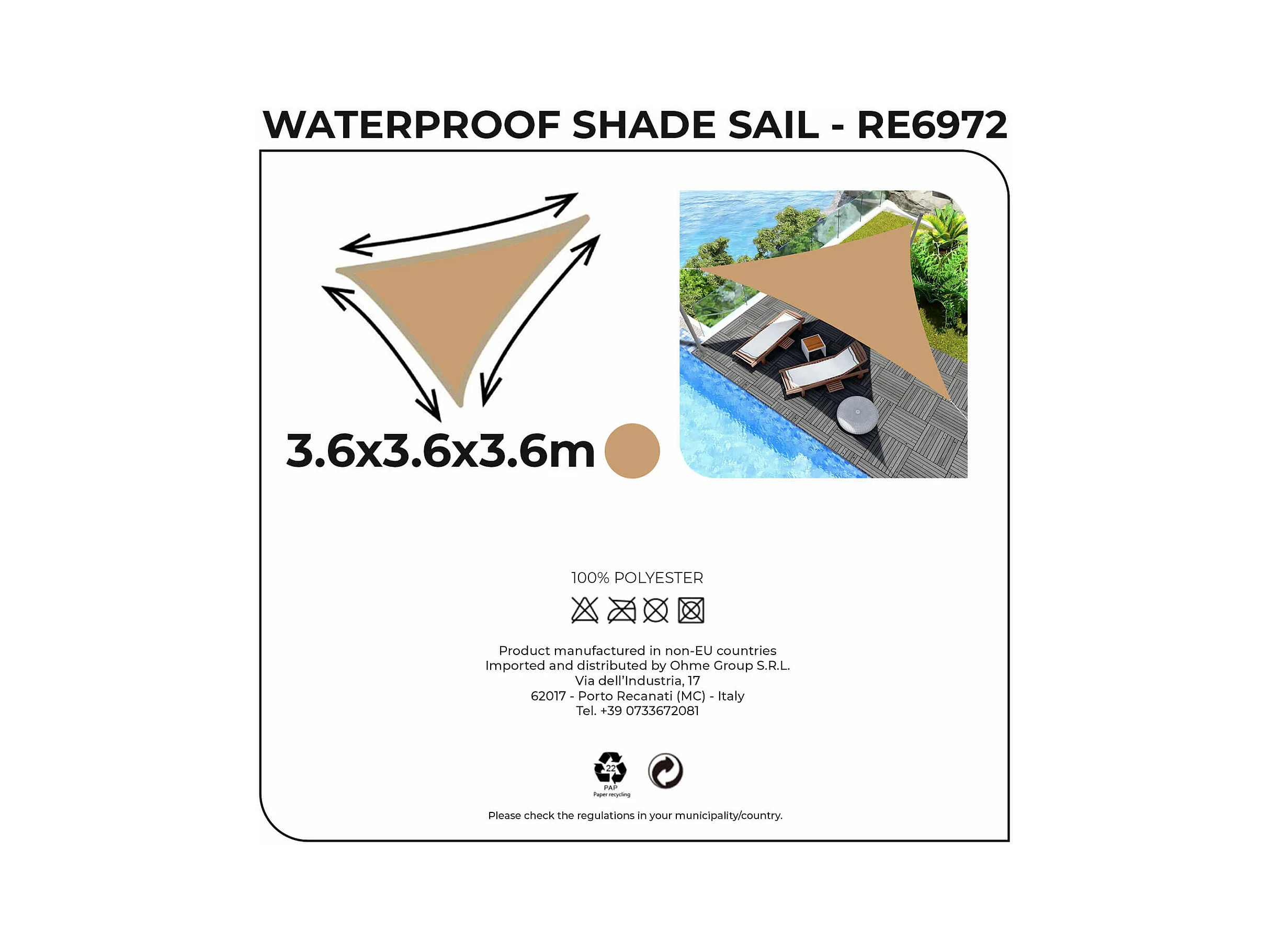 Tenda a Vela Rebecca Mobili Mopane 360x360x360 Poliestere Impermeabile Acciaio Beige Scuro