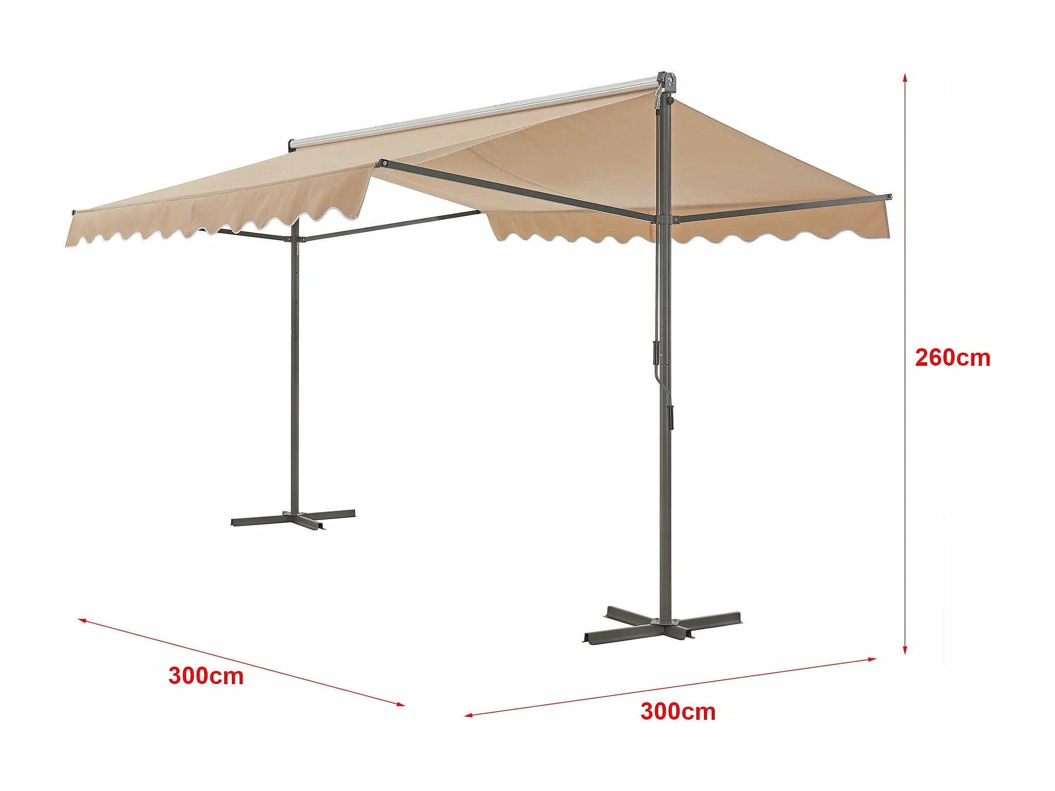 Tenda da sole autoportante a doppia pendenza 300 x 300 x 260 cm sabbia 03_0008293