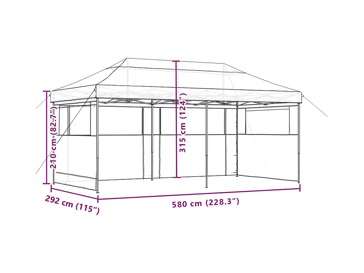 Tenda da ricevimento pieghevole pop-up nera a 3 lati