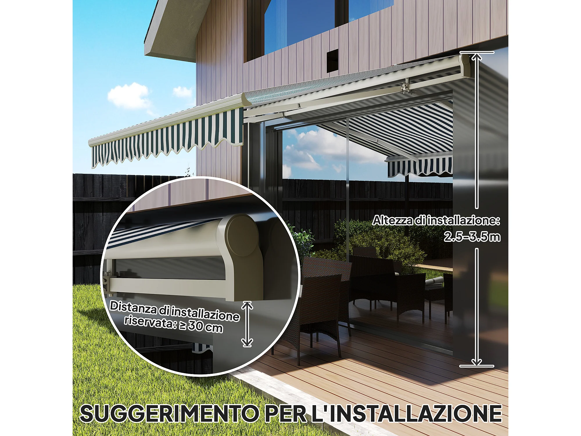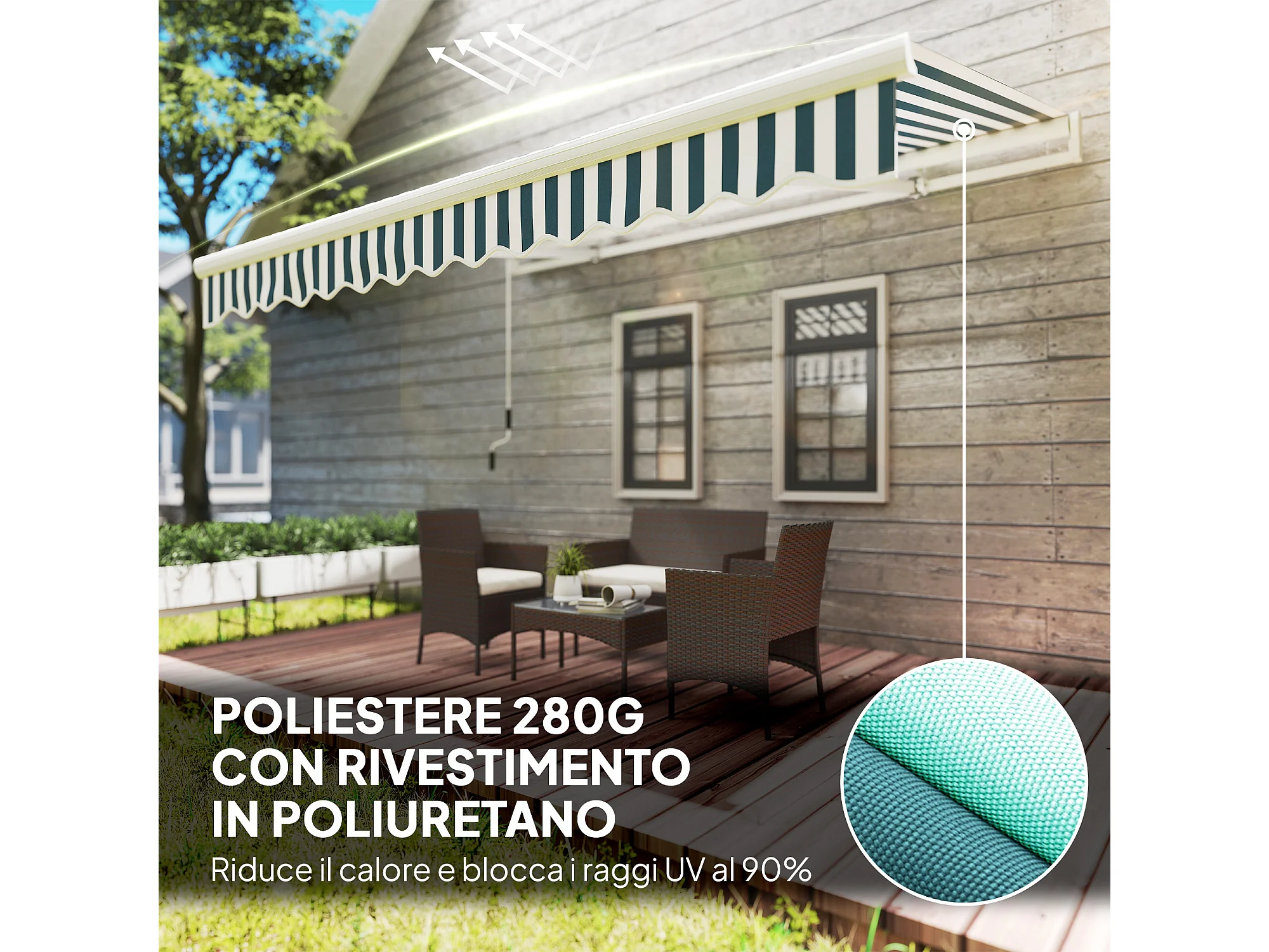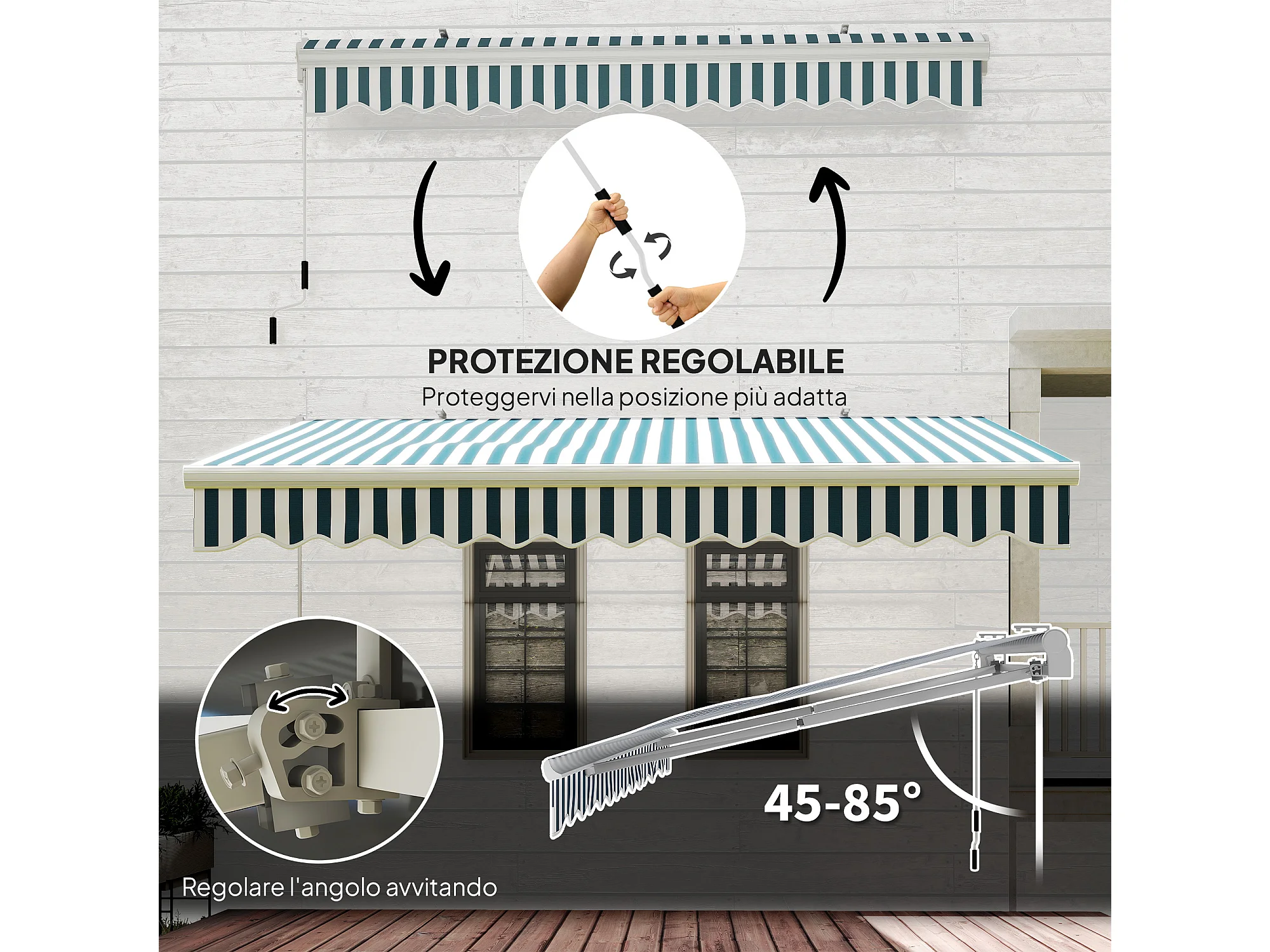 Tenda da sole a bracci avvolgibile a manovella 4x2.5m verde e bianco