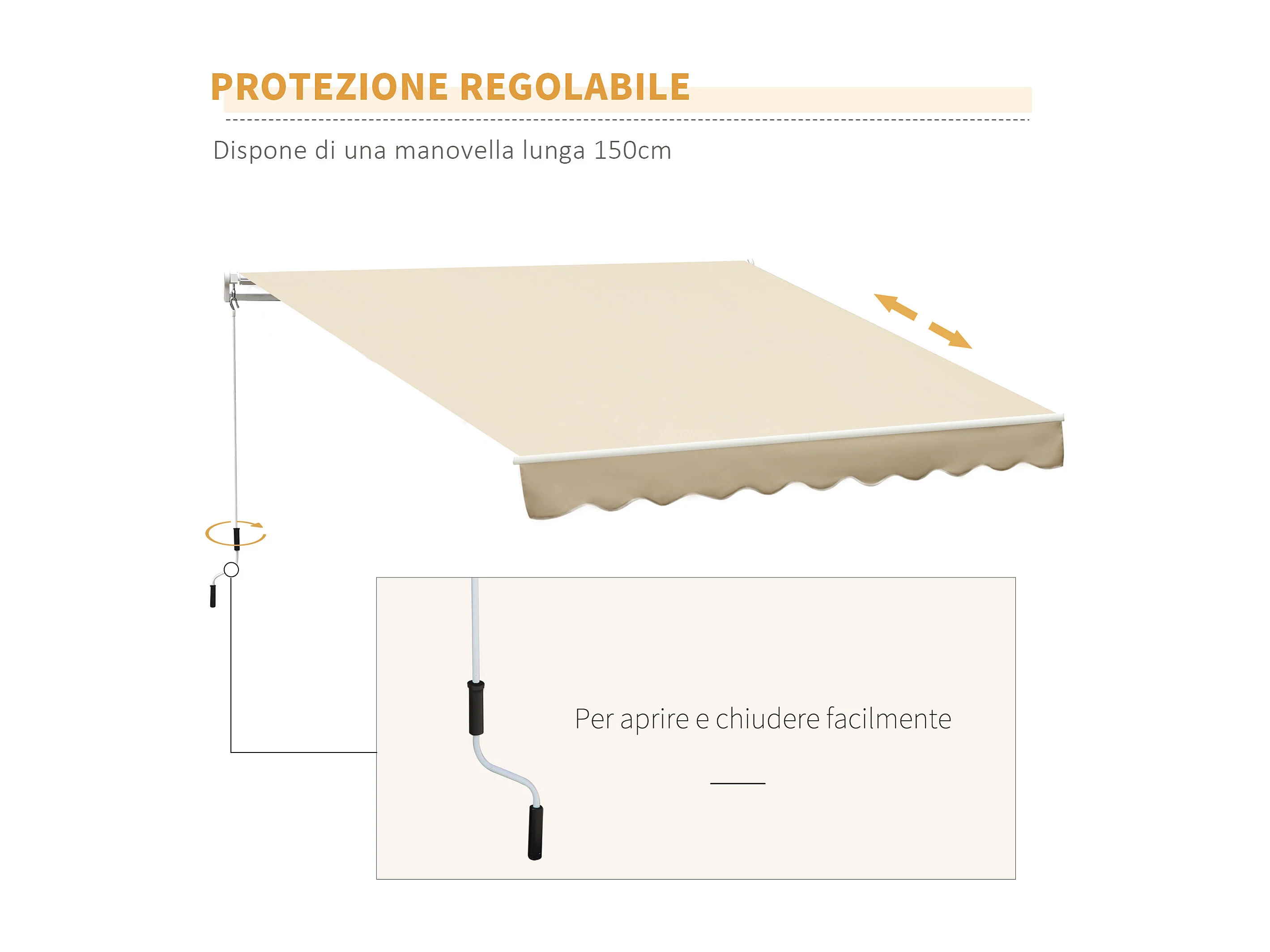 Tenda da sole avvolgibile a caduta manuale 3x2.5m beige