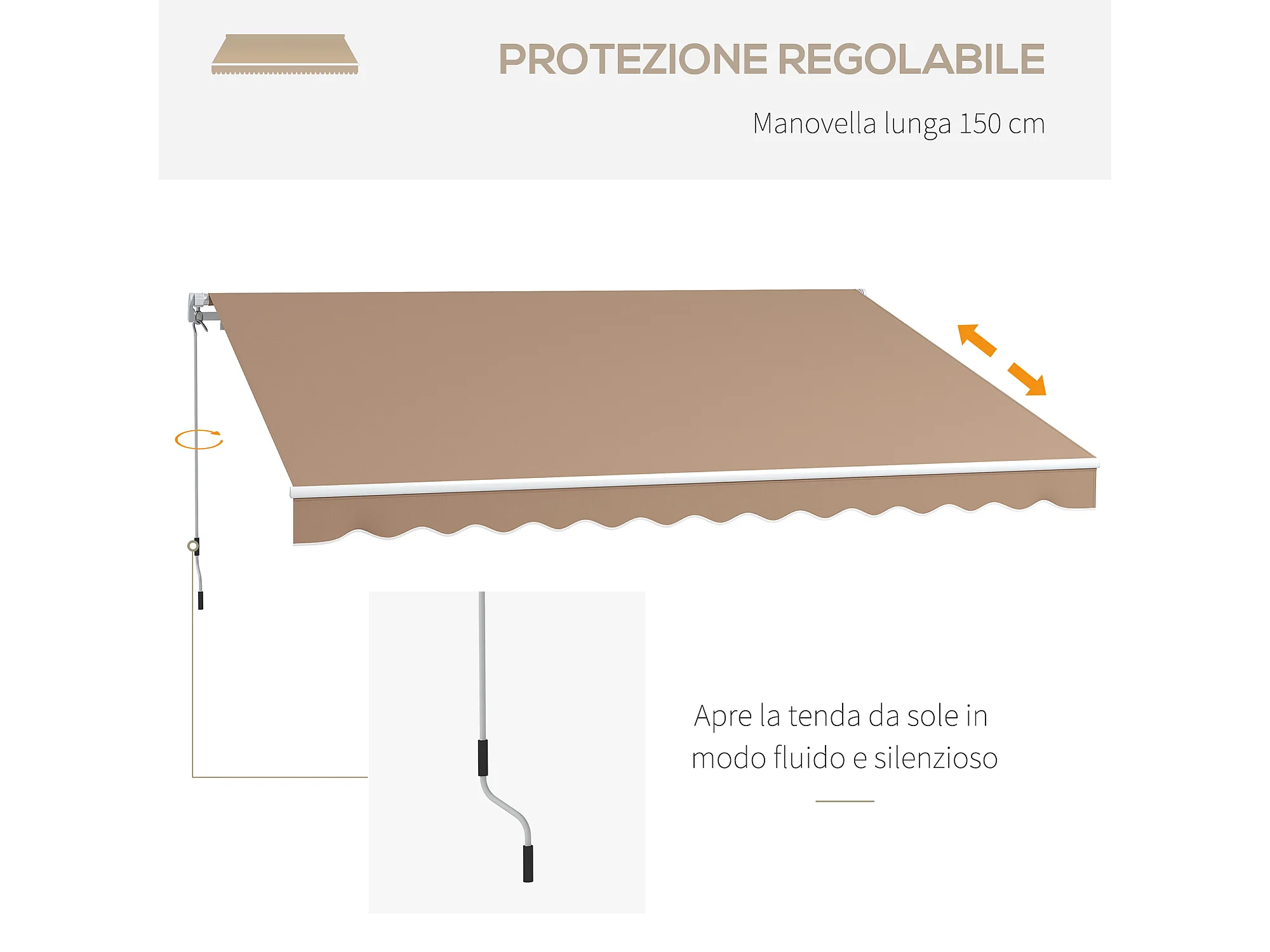 Tenda da sole avvolgibile con manovella 350x250 cm marrone