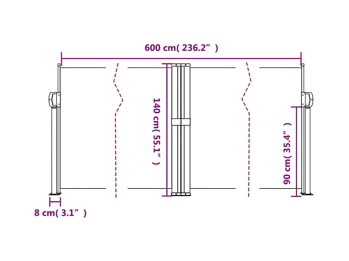Tenda da sole laterale retrattile marrone 140x600 cm